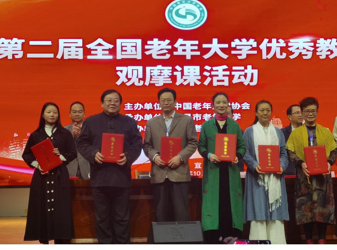 10月16日至17日,第二届全国老年大学优秀教师观摩课在湖北宜昌举行。合肥老年大学二胡班教师孙开玉、古筝班教师刘战西、朗诵班教师鲍远明荣获优秀“说课”教师称号。据悉,本届全国老年大学优秀教师说课观摩活动共评选出62位获奖教师。中国老年大学协会常务副会长刁海峰,湖北省老年大学校长、省老年大学协会常务副会长万年春出席。中国老年大学协会副秘书长李春华主持。来自全国各地老年大学共计300余人参会。