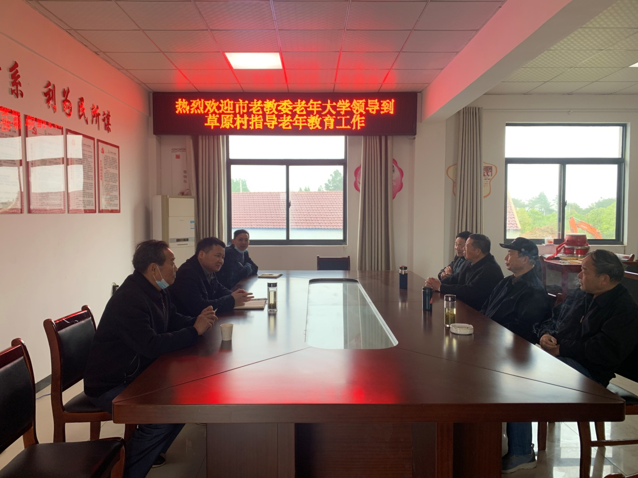 4日29日,桐城市老教委常务副主任胡先泽,副主任、老年大学校长胡爱国,副主任甘向阳等到该市金神镇草原村专题研究村级老年大学教学点教学工作。