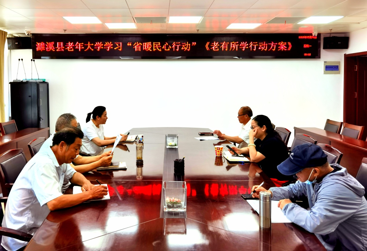 5月30日上午,濉溪县老年大学召开校务会,在认真学习了《安徽日报》5月27日第8版刊登的《完善服务 老有所学有去处》、5月24日第9版刊登的《关爱老年人 添彩夕阳红》等文章后,经过认真讨论,研究拟定了《濉溪县老有所学行动方案》。《方案》明确了目标任务、明晰了老有所学的具体措施,对重点工作进行了详细分工。