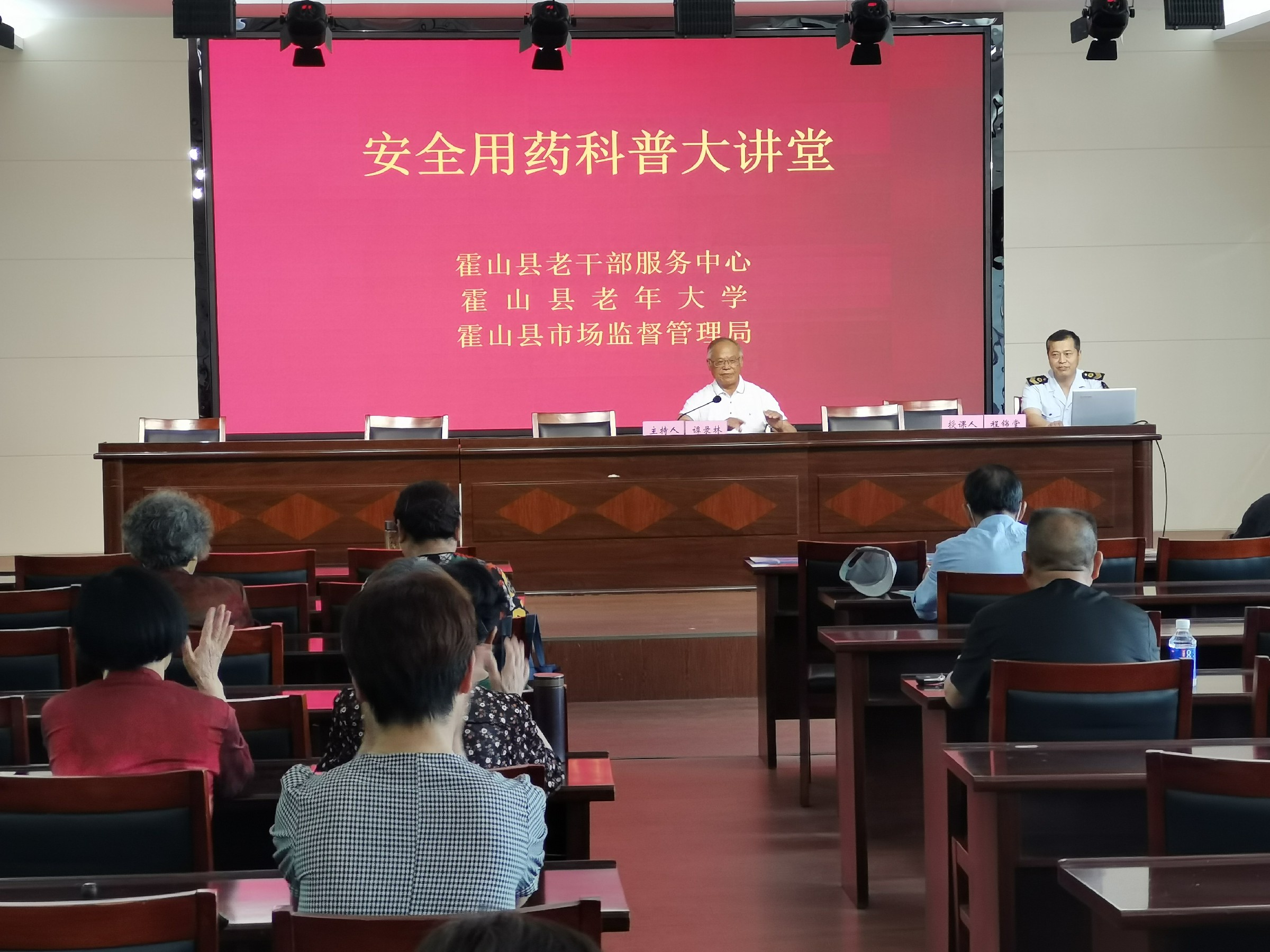 为了提高广大老年学员安全用药的科学素养,改善老年学员的健康水平,6月1日下午,霍山县老年大学、老干部服务中心邀请县市场监督管理局到县老年大学开展了一次安全用药科普大讲堂活动。县老教委常务副主任、老年大学校长谭录林,县老教委副主任、老年大学副校长周瑞祥,县老干部服务中心负责人以及近百名老年学员参与活动。