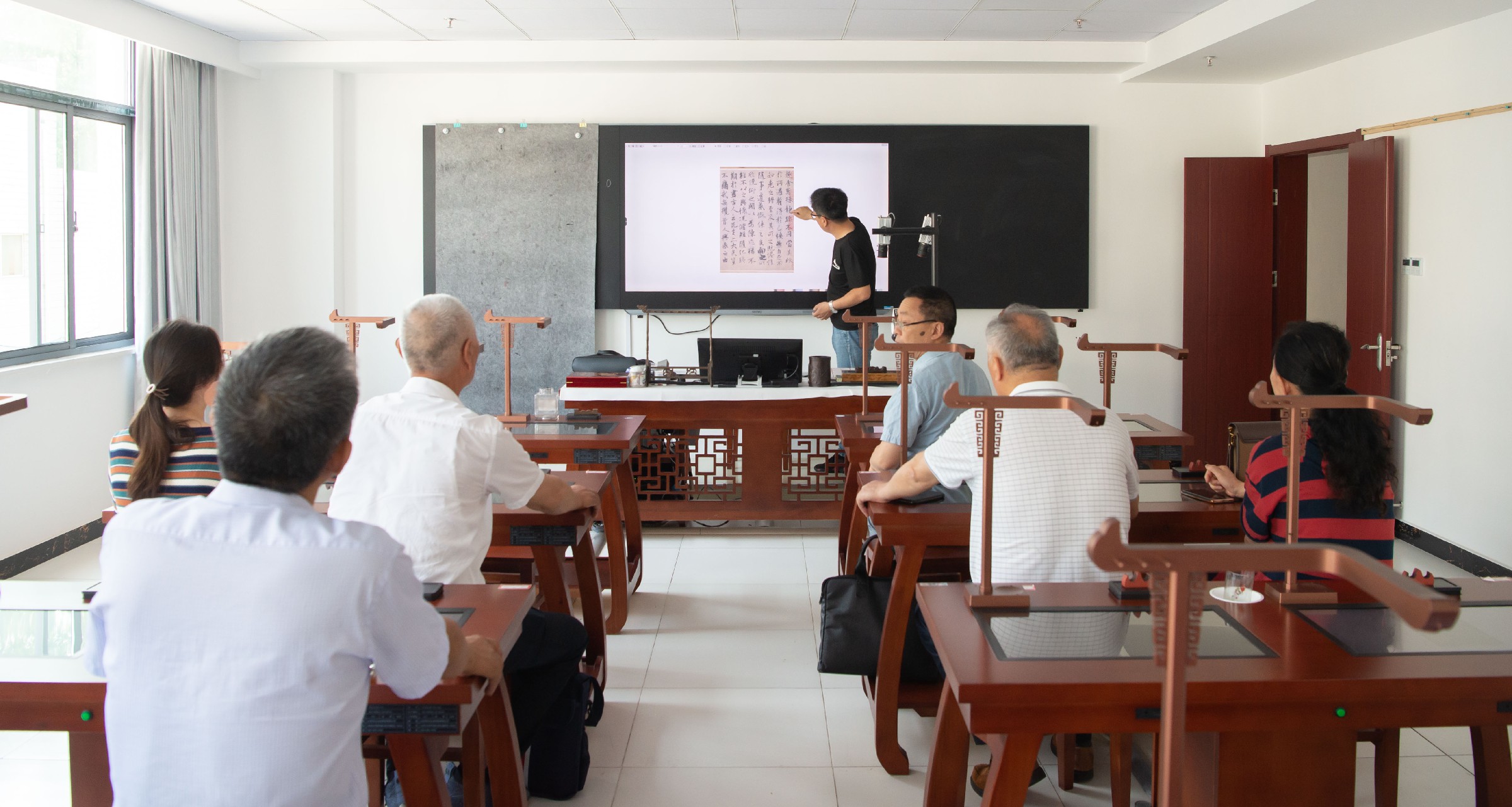 ▲观摩智慧书法教学演示