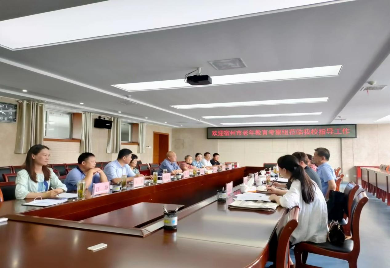 6月24日,宿州市老教委常务副主任张忆秋、市老教委副主任郭华东、市老干部局副局长郜美英一行9人来六安老年大学考察调研5G智慧校园建设及老年教育工作,六安市老教委常务副主任、六安老年大学校长程世龙,六安市老教委副主任、市老年大学常务副校长曹承芳,市老年大学副校长武莲等人陪同考察。考察团首先参观智慧校园建设、观摩了六安老年大学课堂教学情况。