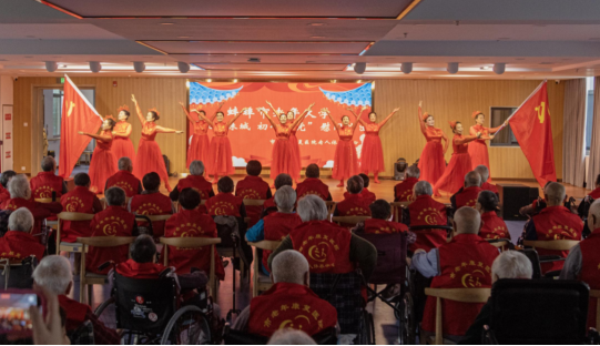 演出活动受到老年康复医院老人养护中心的老人们热烈欢迎,大家早早的来到演出现场,许多重度看护的老人被工作人员用轮椅推着来观看演出。观众席里,一排排满头白发犹如一道靓丽风景。他们看得投入、听得开心,演出现场充满欢声笑语。久违的热闹气氛、络绎不绝的掌声,无不昭显出老人们对精神生活的向往。一位工作人员说:“这次演出让我们老年康复医院老人养护中心的老人们感受到社会温暖的同时丰富了他们的精神文化生活,也让我们的工作人员倍感欣慰。我们希望更多的人能够参与到关爱老人的行动中来,让爱心传递、温暖每个老人的心” 。