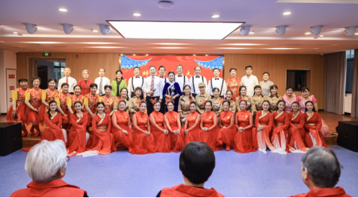 演出在舞姿优美、旋律激昂的《跟着共产党走》舞蹈演出中拉开序幕。紧接着,诗朗诵《当我们老了》、女生表演唱《我的祖国》、二胡齐奏《北京有个金太阳》、淮河琴书《珠城新景象》、小合唱《红梅赞》等节目依次表演。演出在男声小合唱《最美不过夕阳红》中落下帷幕。