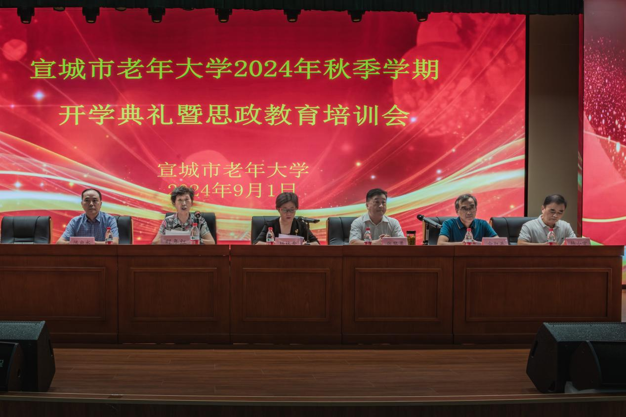 9月1日上午,宣城市老年大学在校报告厅召开2024年秋季学期开学典礼暨思政教育培训会。市政府副市长杨林秀出席会议并讲话。市老教委副主任、市老年大学校长张黎勇,市委老干部局局长俞红兵,市教体局局长陈自水,市老年大学副校长杨小宣,以及各系党支部支委成员、各班级班委会成员、全校教师、部分新老学员代表共近400人参加会议。市老教委副主任、老年大学党委书记程年红主持会议。