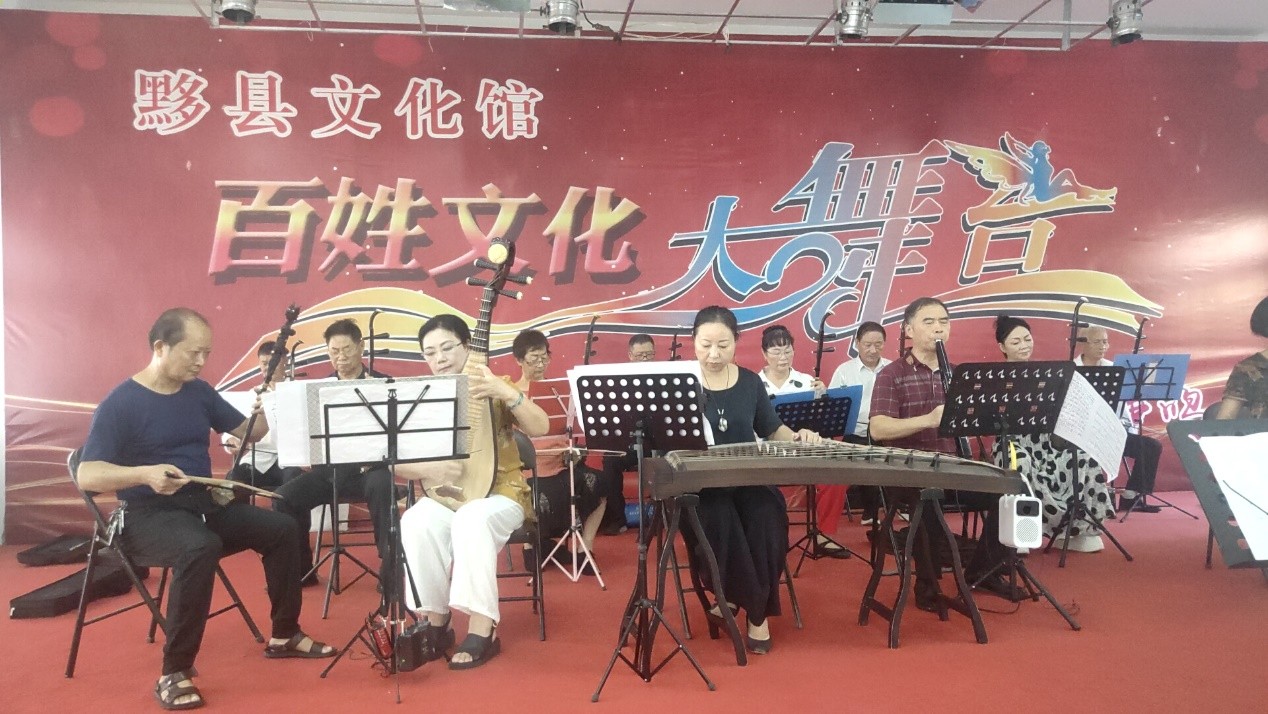 活动首站在黟县古城。古城的石板路、古牌坊和斑驳的墙壁,见证着岁月的变迁。黟县老年大学二胡班学员在县文化馆“百姓文化大舞台”演奏《洪湖水浪打浪》《千里共婵娟》等乐曲,一曲曲饱含深情的乐曲尽情地表达着学员们对祖国母亲的深情。