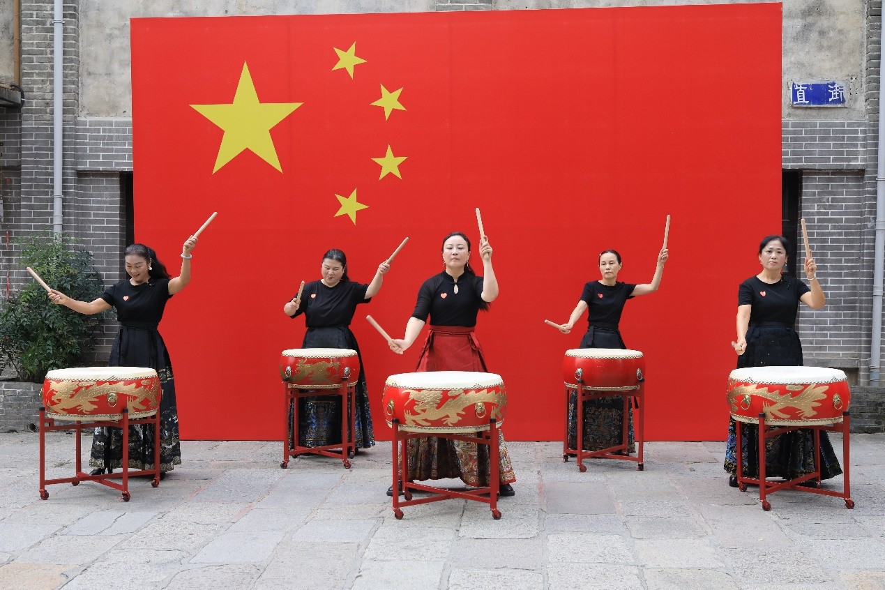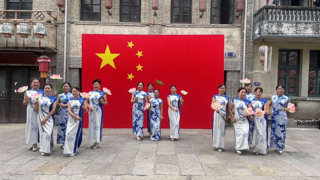 手鼓班学员用威风锣鼓敲响了《精忠报国》,旗袍班用国风旗袍秀《关关雎鸠》《茶之韵》《禅花》和手语《国家》传递着中华传统文化国风之韵,引来众多的市民驻足观看,学员们用曼妙的脚步,细腻的表演让古城在双节氛围中彰显出独特韵味,将古城的古韵与节日的喜庆完美融合。
