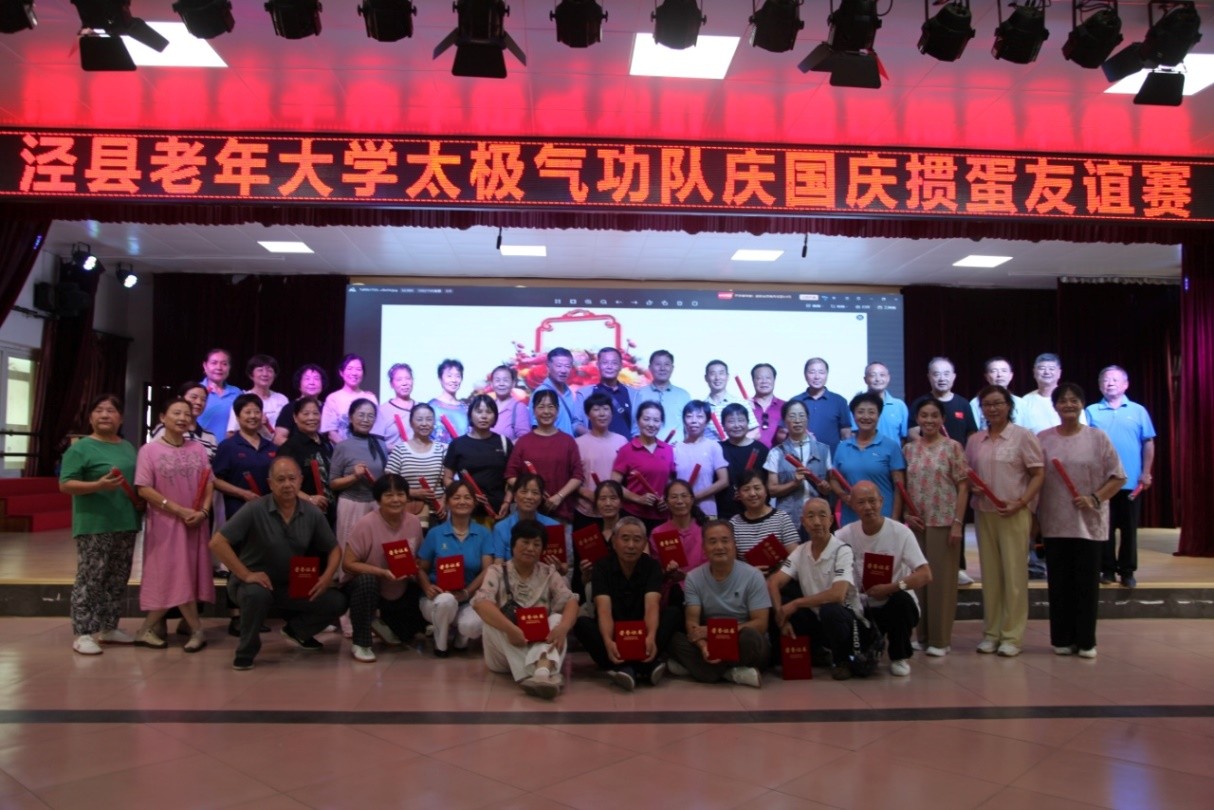 9月30日,主题为“迎国庆、兴中华”的太极文化展演在泾县四馆广场举行。整齐的队伍如同一片“蓝白海洋”,学员们身姿挺拔、目光坚定、充满自信,学员们心怀对祖国自豪与赞美,用真挚的情感和娴熟的技艺表达了对祖国的美好祝福,赢得了现场观众的阵阵喝彩。