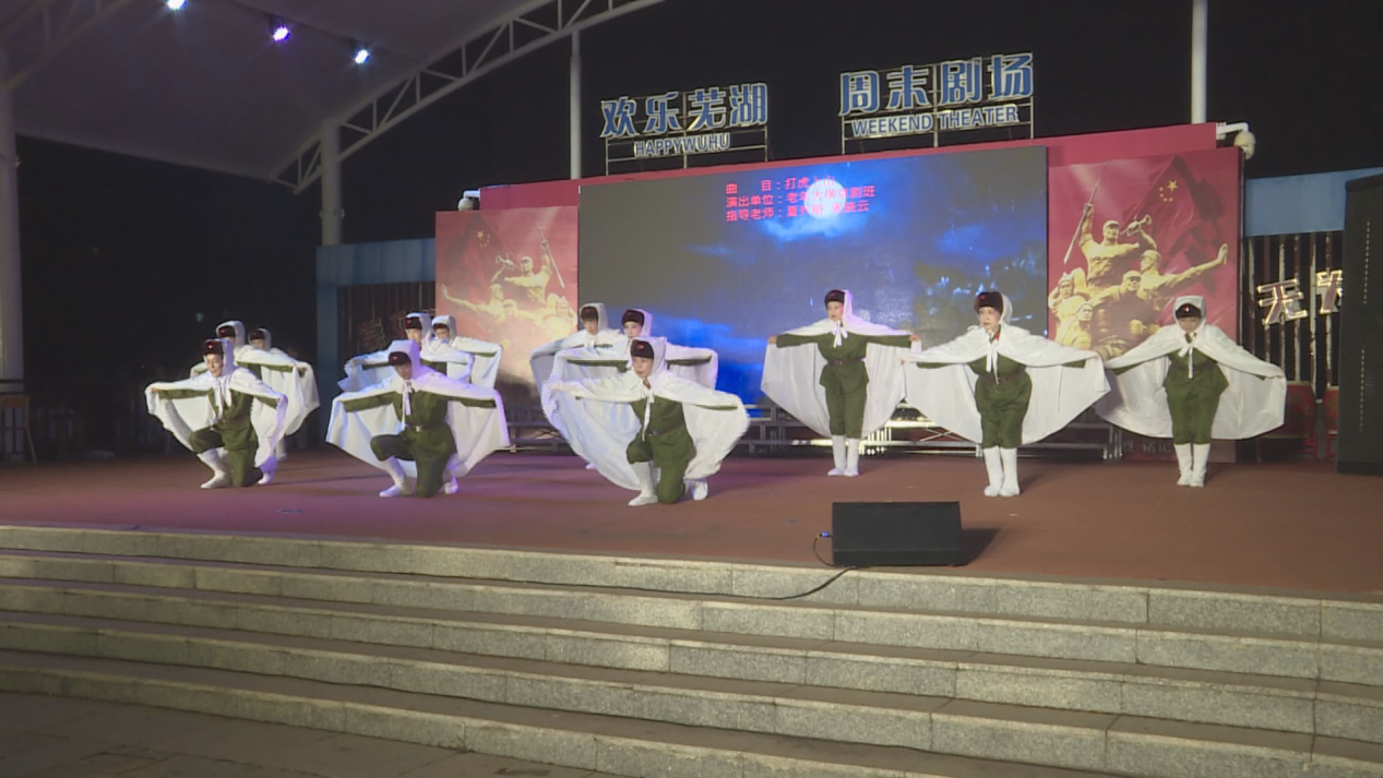 整场演出共19个节目,由三部分组成。第一部分:抗战必胜、正义必胜。先用《中国鼓》、二胡齐奏《南湖红船》暖场,接着用大合唱《四渡赤水出奇兵》开场,再用琵琶合奏《弹起我心爱的土琵琶》、葫芦丝演奏《沂蒙情深》、民乐小合奏《唱支山歌给党听》、小合唱《游击队之歌》推送,当庐剧班杨建平老师历时半年创作的《歌唱英雄王二小》抗战情景剧演完后,整场掌声雷动,彰显出在中国共产党领导下的抗日军民,奋勇抗战,抵御外辱,最终赢得胜利的历史主题。