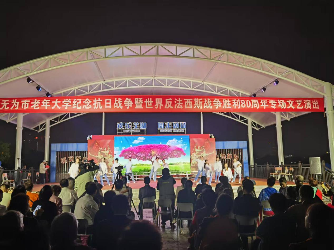10月15日晚,无为市老年大学在无城周末剧场举办“纪念抗日战争暨世界反法西斯战争胜利80周年专场文艺演出”活动。无为市委常委、组织部长刘求标,市委宣部副部长、文联主席王梅,以及市教育局、文化局、融媒体中心、老干部服务中心、文化馆主要负责人应邀观看了演出,无为市老年大学校长洪伟陪同。