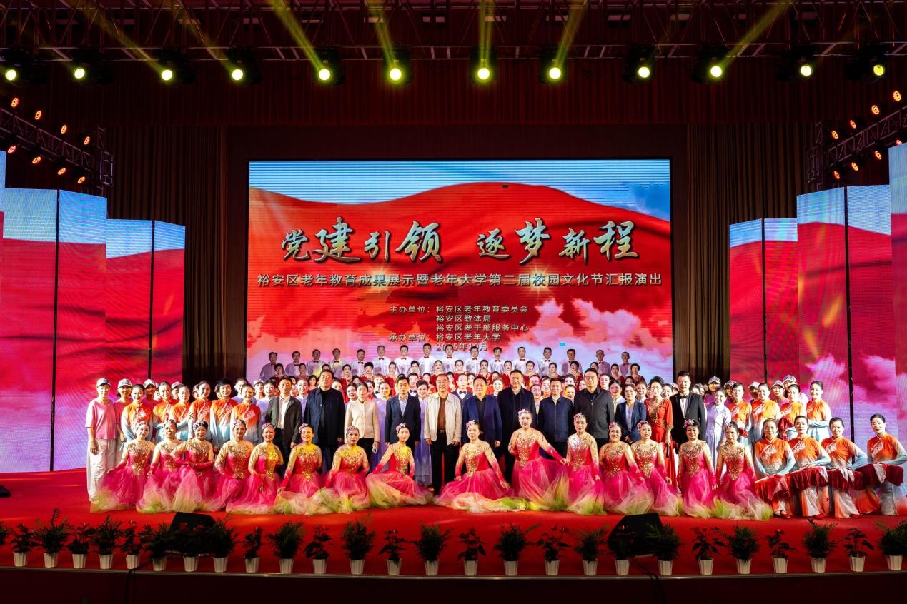 金秋时节,硕果累累。10月25日下午,重阳节前夕,安徽省六安市裕安区“三馆一中心”大会堂内灯火璀璨、掌声如潮,“党建引领 逐梦新程”裕安区老年教育成果展示暨老年大学第二届校园文化节汇报演出在此圆满收官。这场汇聚400余名老年学员、呈现16个精品节目的文化盛宴,既是裕安区老年教育成果的集中呈现,更以“银龄逐梦”的鲜活姿态,勾勒出党建引领下老年教育高质量发展的动人图景。