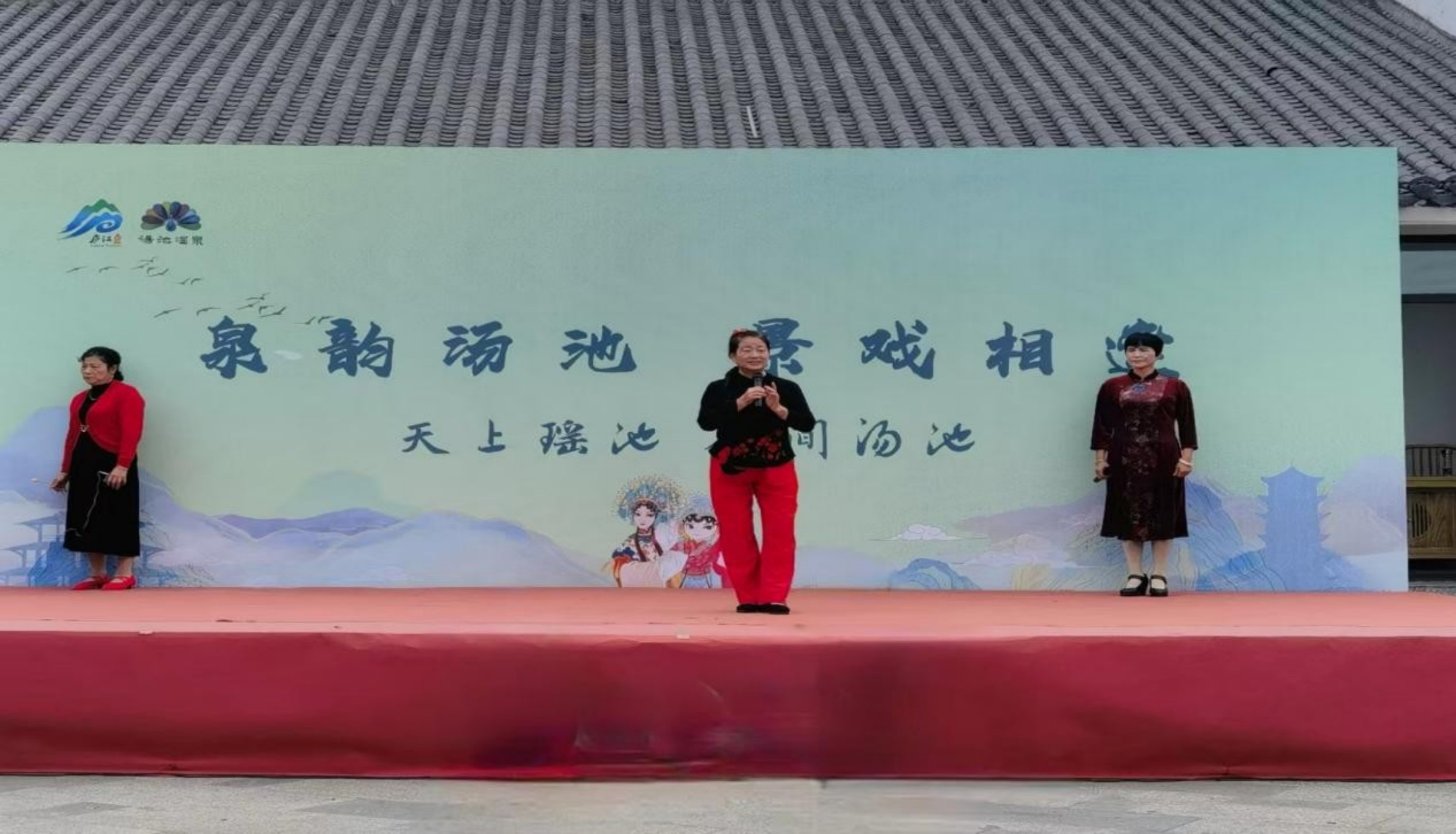 最后,一行人来到庐江汤池温泉“泉韵汤池,景戏相逢”舞台与当地老年大学学员开展了以歌会友交流活动等。