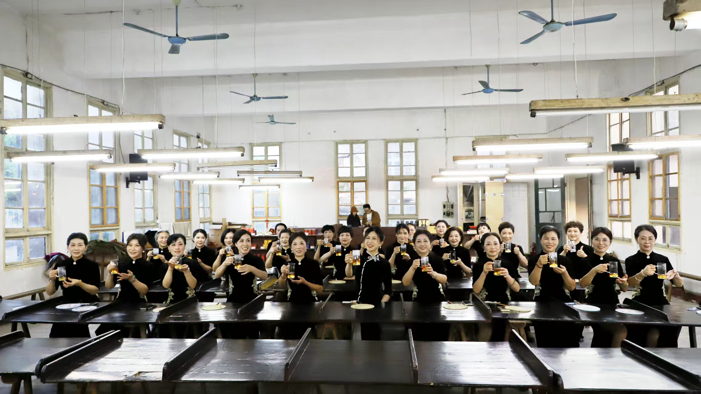 展演落幕,学员们走进中国十大名茶中唯一红茶品类的润思祁红诞生地——润思红茶厂(贵池老茶厂)。在讲解员的讲解下,大家了解了祁门红茶的百年历史与传统制作工艺,在袅袅茶香中细品润思祁红醇厚回甘的独特滋味,感受池州红茶文化的深厚底蕴。随后,学员们移步润思祁红厂房打卡留念,镜头定格下她们轻摇团扇、笑意盈盈的美好瞬间,为此次游学活动留下珍贵记忆。