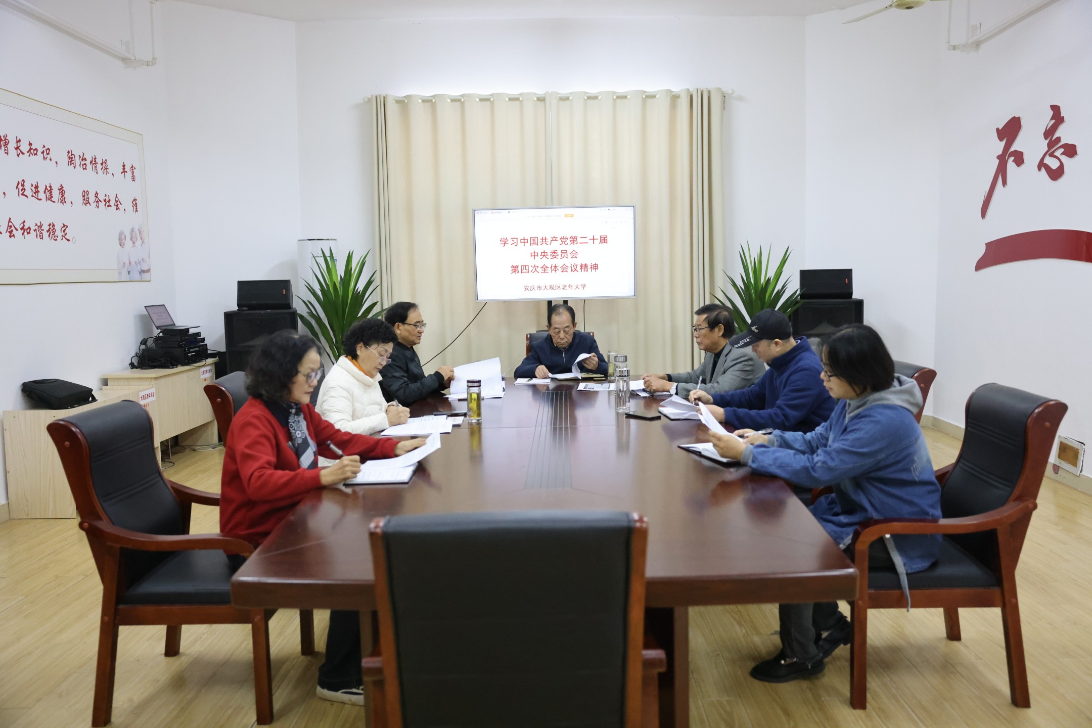 11月11日,大观区老年大学领导班子召开专题学习会,集中学习党的二十届四中全会精神,结合老年教育工作实际部署落实举措。