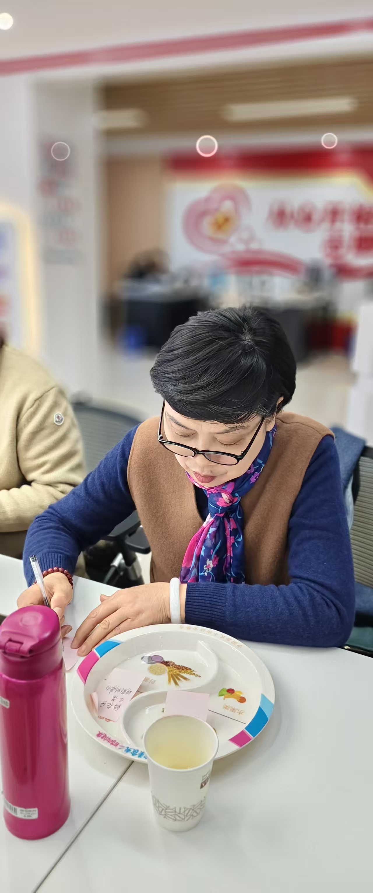 理论的温暖,最终要在实践中落地。随后,一个充满巧思的环节让课堂变成了一个温暖的“食疗工作坊”。每位学员都收到了一个洁白的餐盘和数张彩色的便利贴。“现在,请为自己设计一份秋冬菜单。”王老师的话音刚落,学员们便陷入了认真的构思。有的凝神思索,随即笃定地写下“南瓜红枣羹”;有的与邻座轻声交换意见,在“清蒸鲈鱼”旁添上了“萝卜丝”。