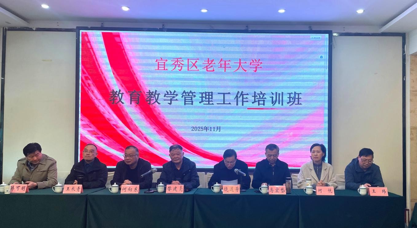 为进一步提升区老年大学教育教学管理水平,夯实教学质量根基,筑牢班级服务纽带。11月22日,宜秀区老年大学教育教学管理工作培训班隆重举行。校党委班子全体成员、特邀专家、全体教师及各班班长齐聚一堂,共同参与了内容充实、针对性强的培训活动。开班仪式由区老年大学党委副书记、常务副校长饶道芳主持。