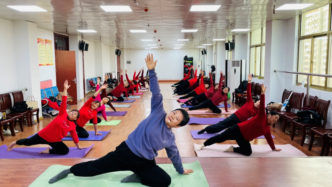 瑜伽课上,一群平均年龄60+的学员练得有模有样。“放松,不要勉强自己,以身体的舒服为主,不要苛求和老师的动作一致。”她一边做着示范,一边温馨地提醒,还不忘鼓励“瑜伽是一个长期的锻炼,慢慢地能感受到身体的变化。”