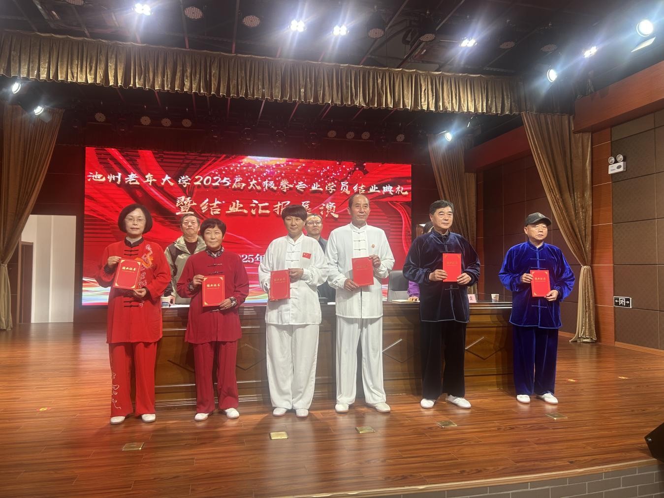 12月9日,池州老年大学2025届太极拳专业学员结业典礼暨结业汇报展演活动在池州老年大学南校区五楼多功能厅成功举办。