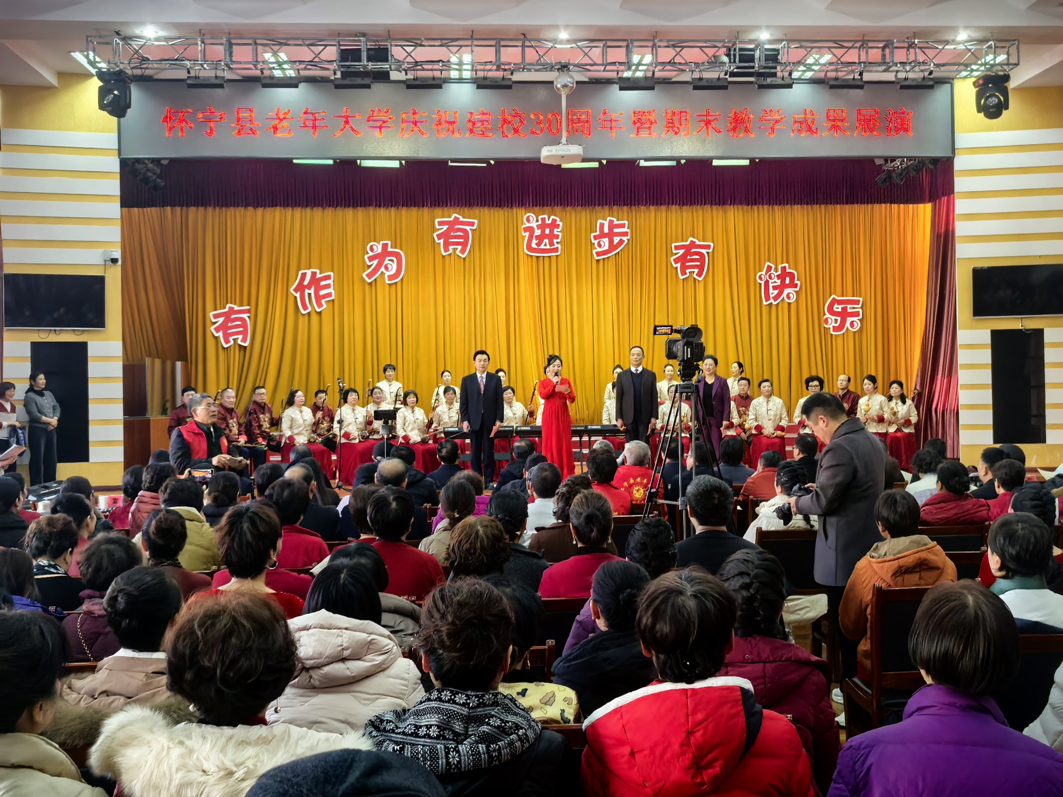 三十载栉风沐雨育桃李,半世纪初心如磐映夕阳。12月26日,怀宁县老年大学建校三十周年校庆暨期末教学成果展演隆重启幕。学校始建于1995年,这是建校以来首次实现全校所有专业班新老生全员参与的盛会,通过静态展示与动态汇演两个篇章,全方位呈现了该校丰硕成果与银龄学员的昂扬风采,为三十年办学历程写下浓墨重彩的一笔。