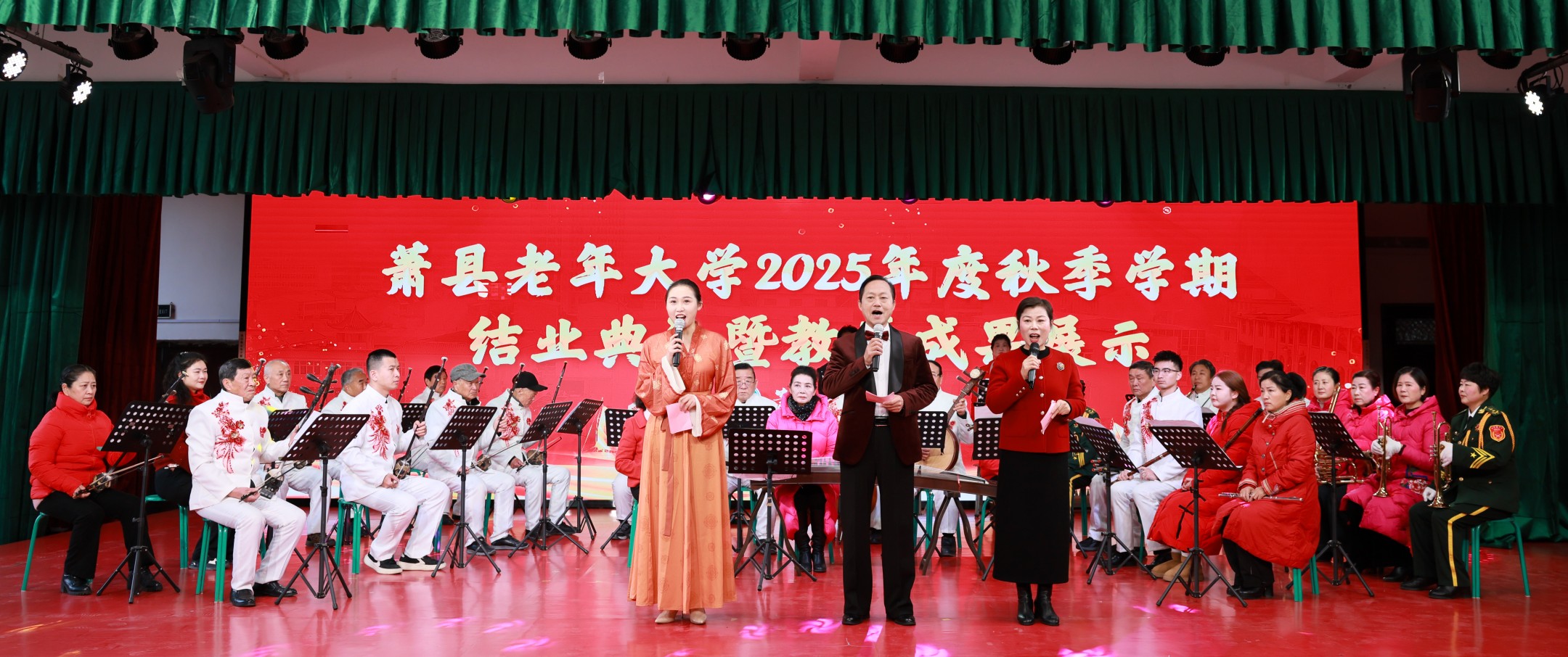 岁末暖阳映初心,银龄逐梦展风华。近日,萧县老年大学秋季学期教学成果展圆满落幕。这场集文艺汇演、书画摄影展于一体的文化盛宴,汇聚全校49个班级、1800余名老年学员的学习硕果,以多元形式生动诠释了“老有所学、老有所乐、老有所为”的新时代银龄风貌,现场气氛热烈,节目精彩纷呈。
