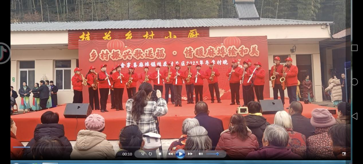 12月30日,麻埠镇桂花村冬季村晚现场人头攒动,掌声雷动。金寨老年大学副校长王琦带领老校区红苹果志愿服务队成员和学员代表共30余人,携精心编排的《红歌六联奏》《中国龙舞起来》两个节目精彩亮相。
