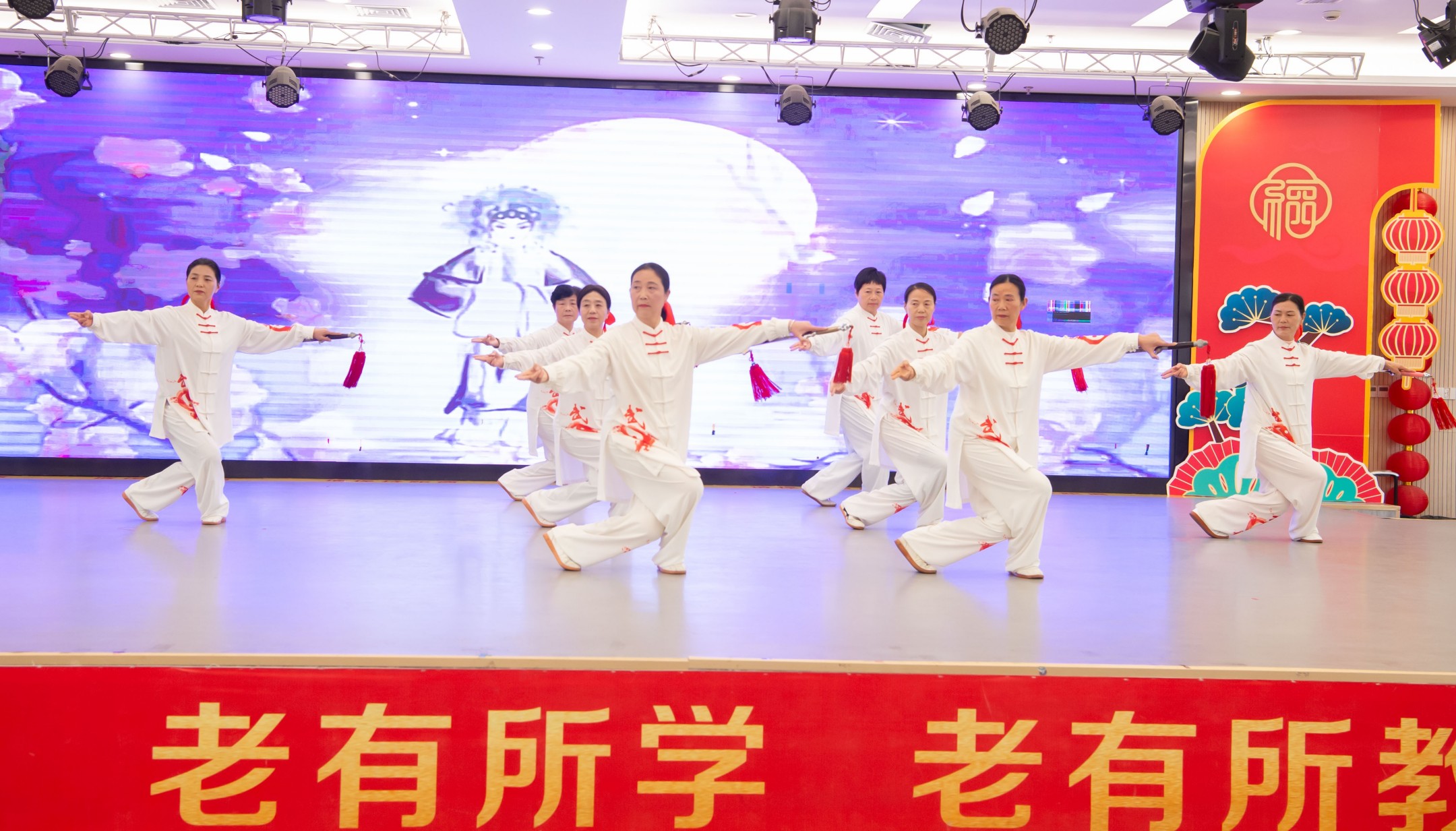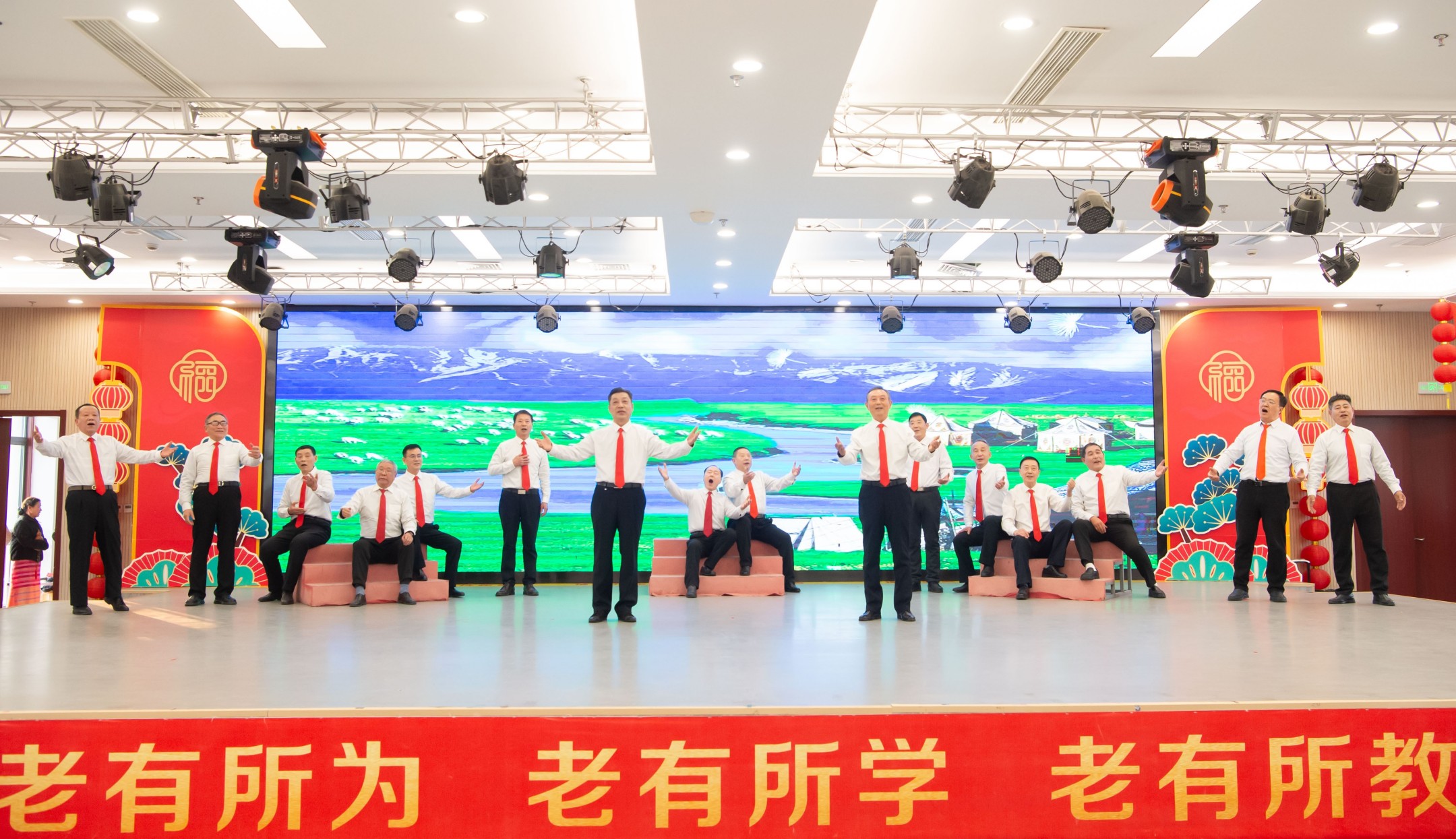 旗袍走秀《国韵》将传统美学与老年风采完美融合,尽显东方韵味;朗诵《红土地上的爱情绝唱》情感真挚、催人泪下。舞蹈《赞歌献给党》、瑜伽表演《女人花》、太极剑与小球操《梨花颂》《律动小球操》、男声小合唱《草原上升起不落的太阳》、特班节目《风之爱》、肚皮舞《沙漠玫瑰》、葫芦丝合奏《月光下的凤尾竹》、京剧《甘洒热血写春秋》、健身舞蹈《当兵的人》《当那一天来临》等节目轮番登场,形式多样、内容丰富,充分展现了县老年大学学员们的多才多艺与积极乐观的生活态度。