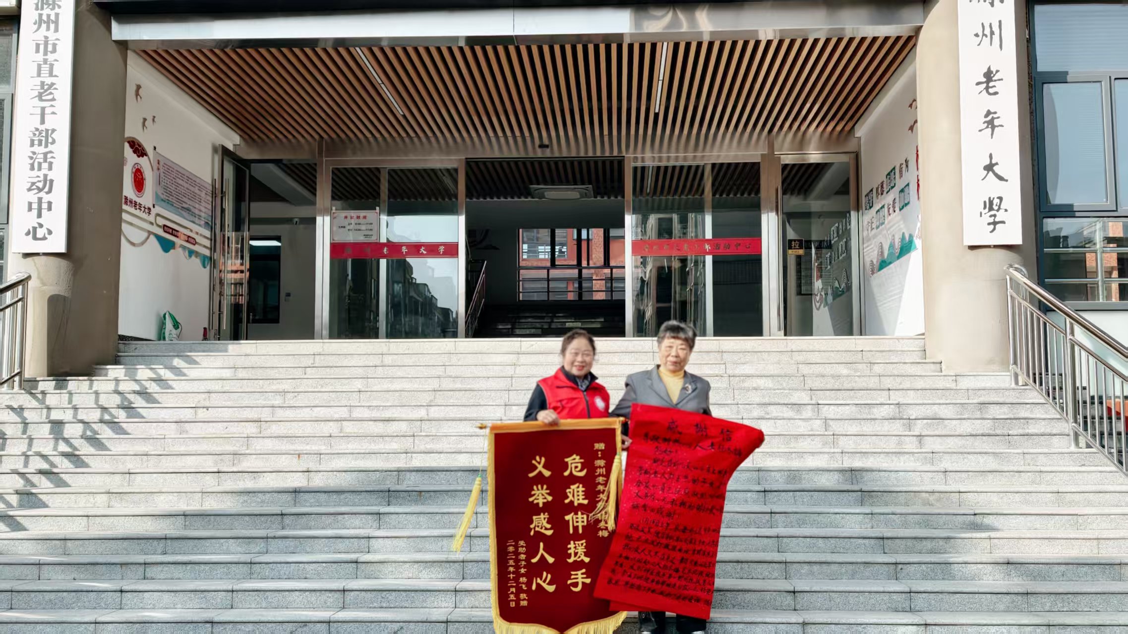 冬日虽寒,温情暖心。为答谢杨冬梅的危难相助,老人家属特意制作了一面印有“危难伸援手,义举感人心”的锦旗,专程前往老年大学送到她手中,当面表达谢意。