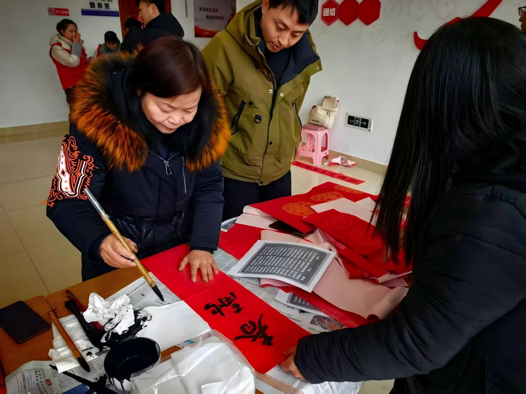 墨香春联,是春节的另一份牵挂。在新楼社区党群服务中心,几位书法老师铺纸挥毫,笔走龙蛇。“马年好运随春到”“平安如意千家福”,一副副红彤彤的春联墨迹未干,就被等候的居民高兴地领走。“这字儿写得真喜庆!比买的更有年味!”居民李大姐举着春联,笑得合不拢嘴。此次活动累计组织15名志愿者,为新楼、江店两个社区的5个小区义务撰写春联上千副,将传统年味送到百姓家门口。
