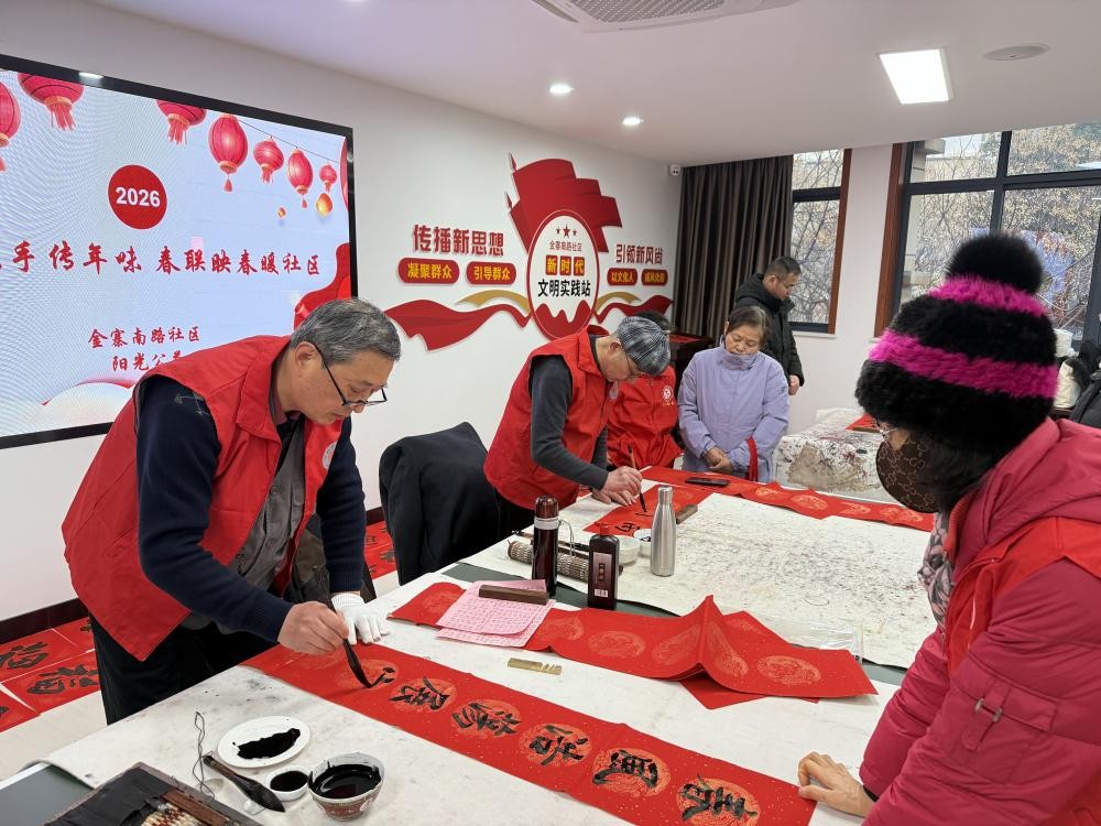 岁聿云暮,春祺将至。在农历马年新春即将到来之际,合肥老年大学“银耀庐州”志愿者服务队书法志愿者们,先后走进滨湖慈铭健康管理中心、金寨南路社区、名都花园小区、市智慧养老中心、凌大塘社区和大夫第社区等地方开展“送春联”活动,以笔墨为媒,将新春的美好祝福送到群众手中,让传统年俗在墨香中焕发新活力。
