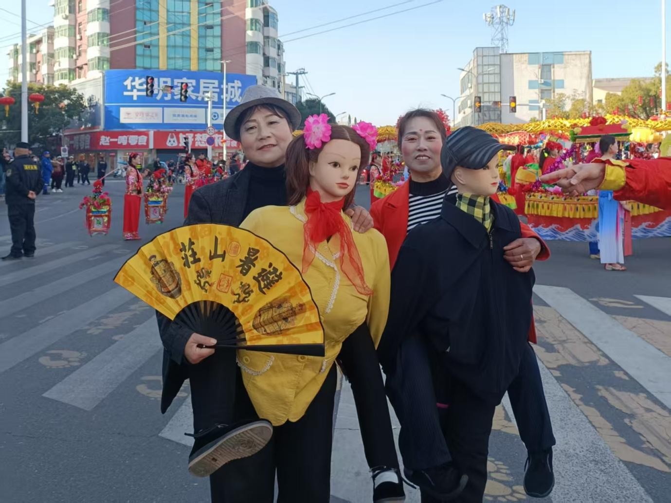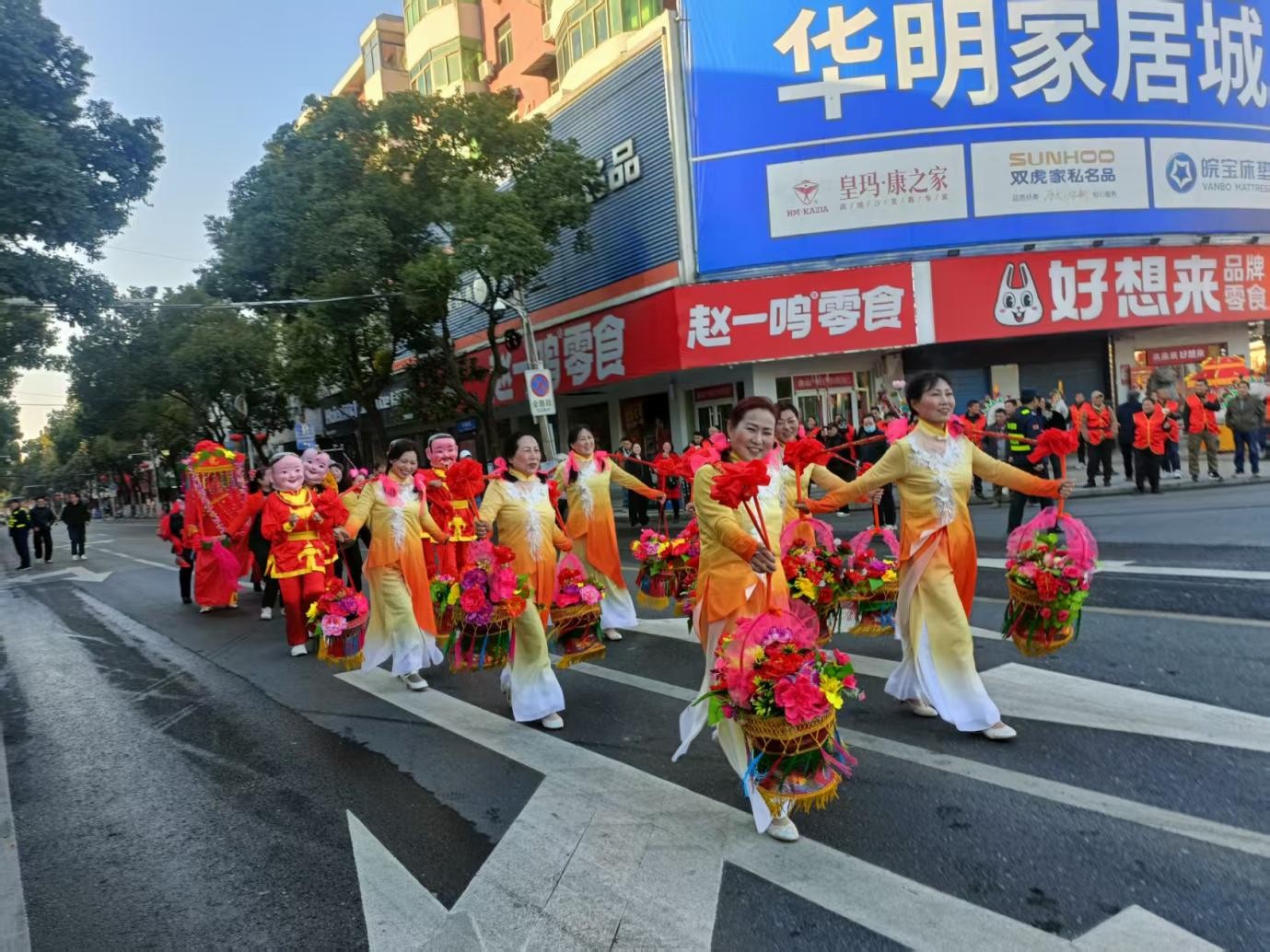 本次活动涵盖了含山民间扎彩的内容,有柴龙、滚龙、少驮老、花船、花挑、狮子、蚌精、荷花等。全县8个镇、11支队伍330名非遗民俗才艺爱好者精神饱满,身穿民俗盛装齐聚一堂。上午9点开幕式结束后,11支队伍各自在志愿者的引领下按预定顺序出发,沿规划路线有序进行,并于观众互动表演。