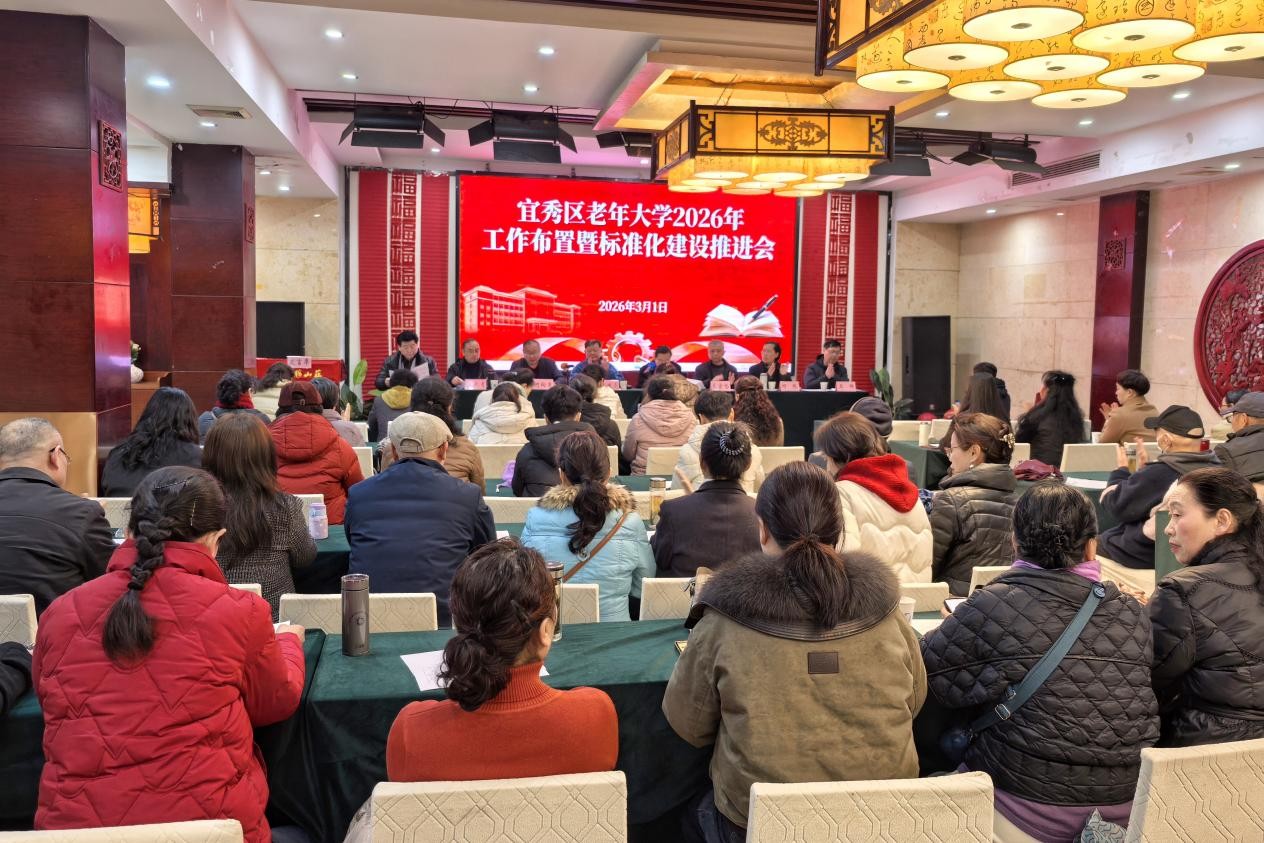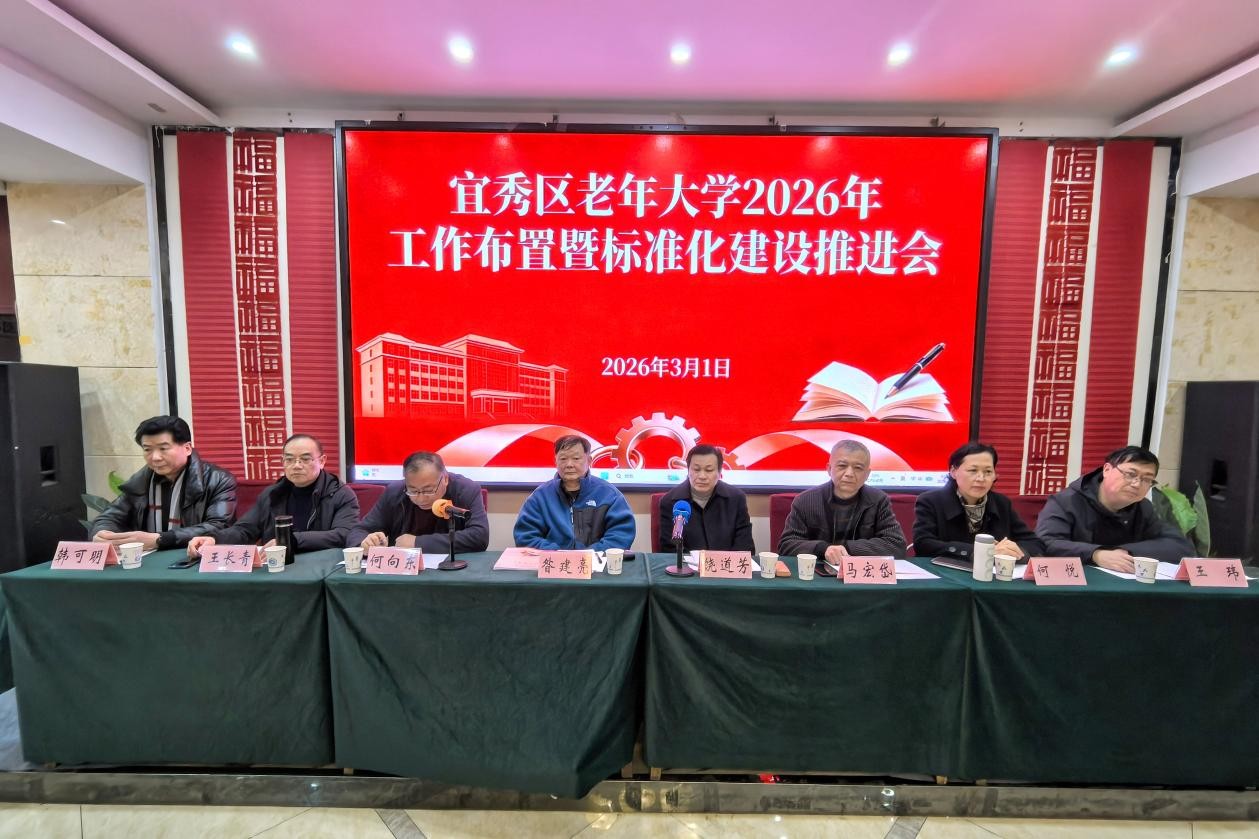 3月1日,安庆市宜秀区老年大学举召开了2026年工作布置暨标准化建设工作推进会。校党委书记、校长昝建亮出席并讲话。校党委班子成员、全体教师及班长参加会议。会议旨在全面学习贯彻党的二十届四中全会精神,深入贯彻落实习近平总书记关于老龄和老年教育工作的重要指示精神,系统总结“十四五”时期及2025年工作成果,部署安排2026年重点工作及标准化建设任务。会议由校党委副书记、常务副校长饶道芳主持。