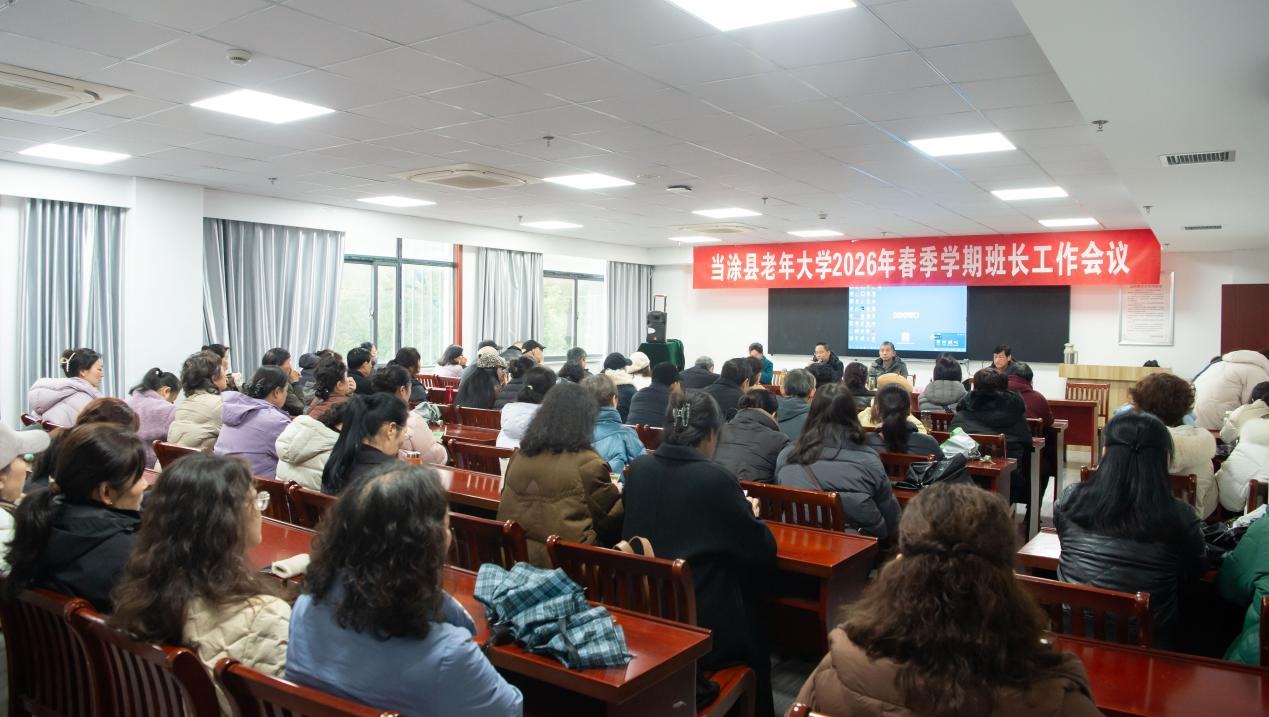 3月2日上午,当涂县老年大学在本校201教室召开春季学期班长培训会,校委会、学委会成员及全体班长参会。培训会由副校长汪后平主持。