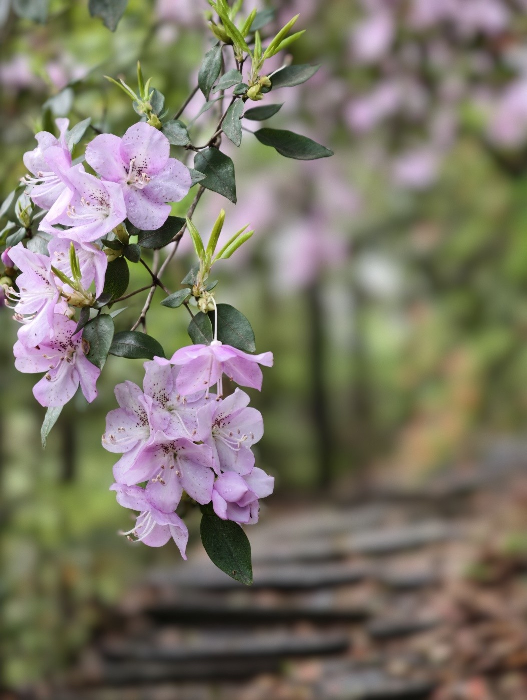 “大家注意构图,可以利用杜鹃花的簇拥来衬托古道的沧桑。”老师一边示范一边说道。学员们迅速散开,寻找最佳拍摄点。有的学员蹲在花丛中,仰拍杜鹃花与蓝天的组合;有的学员以古道为背景,拍摄娇艳欲滴的花朵特写;还有的学员将镜头对准在花丛中穿梭的蝴蝶和蜜蜂,为画面增添了一份灵动。