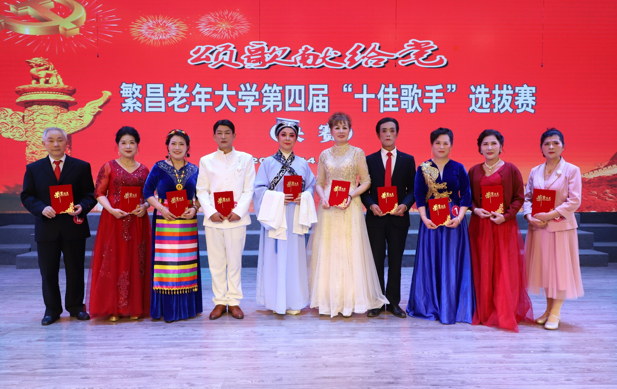 4 月11日至13日,由繁昌老年大学校委会主办,校学员委员会、校艺术团承办的第四届“颂歌献给党”十佳歌手选拔赛,在校四楼演出大厅精彩举办并圆满落幕。
