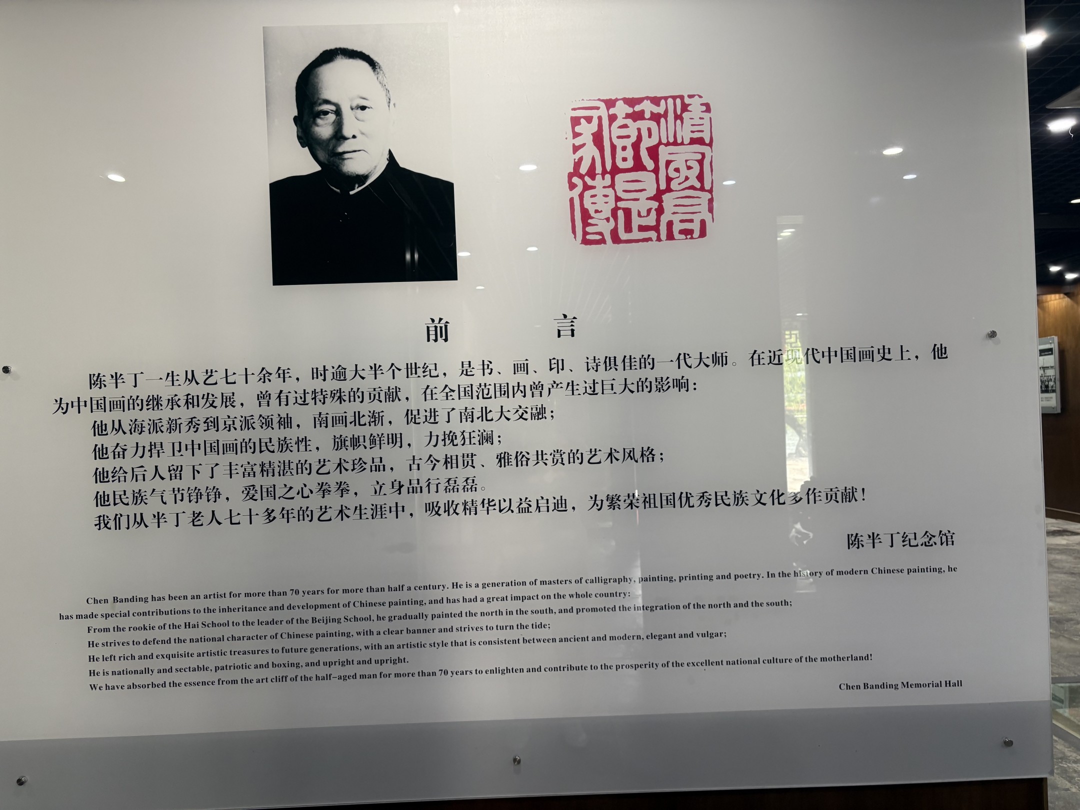 过了奎文阁,走进陈半丁纪念馆。真是不看不知道,一看震撼到。他一生命运坎坷,因酷爱书画,珍惜机会,跟随大师,学习刻苦,最终成为我国书、画、印、诗俱佳的一代大师,在近现代中国画史上有着重大的影响。他给后人留下了丰富精湛的艺术珍品,古今相贯、雅俗共赏的艺术风格;他民族气节铮铮,爱国之心拳拳,立身品行磊磊。学员们从从他七十多年的艺术生涯中,学会了刻苦习练,持之以恒。