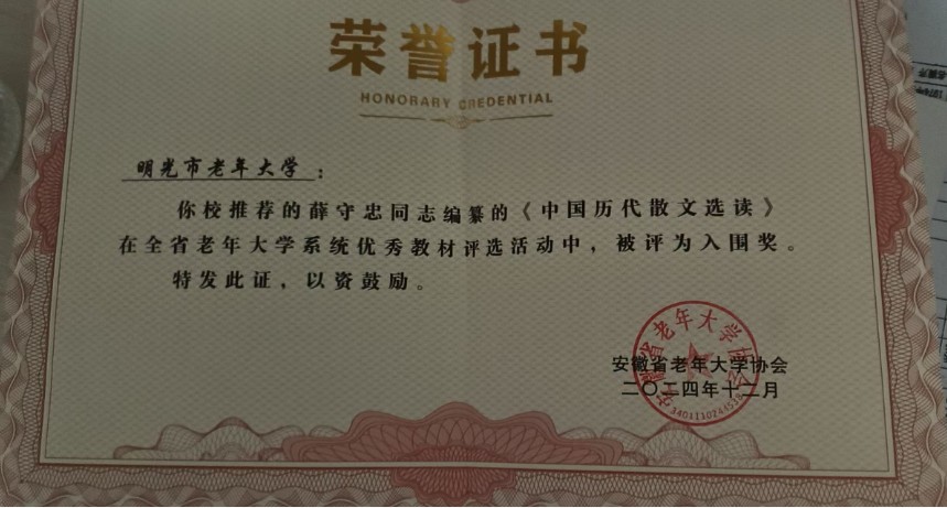 选好老师,编好教材是办好文学班的基础。学校通过调研,聘任经验丰富的高中语文教师任教。如2019年聘任了从教多年,具有丰富文学知识和语文教学经验的薛守忠同志为文学班老师。薛老师到任后,结合老年学习特点,编写《古代散文选读》《历代散文欣赏》《历代文学作品选读》等特色教材,先后斩获省级教材入围奖、校级优秀教材奖;薛老师本人也获评全省及校级老年大学优秀教师,为班级教学筑牢根基。