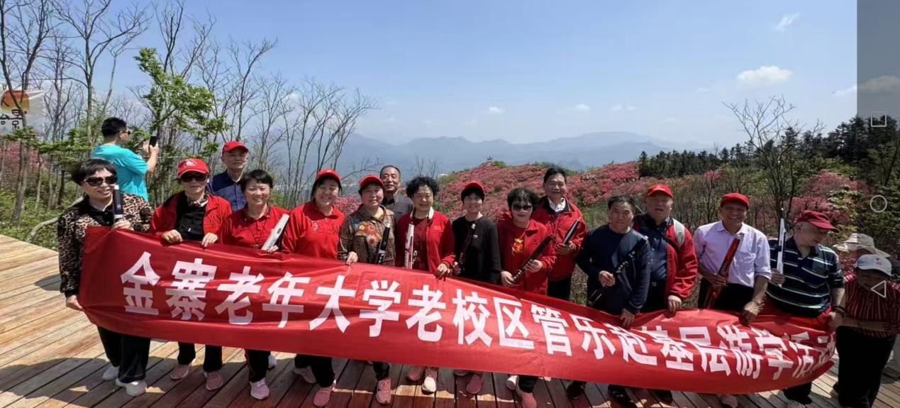 春风送暖,杜鹃盛放。为丰富老年学员的精神文化生活,4月19日,金寨老年大学老校区管乐团学员在黄选武、李淑堂两位老师的带领下,赴花石乡大湾村与吴家店镇太平山,开展了一次别开生面的游学实践活动。