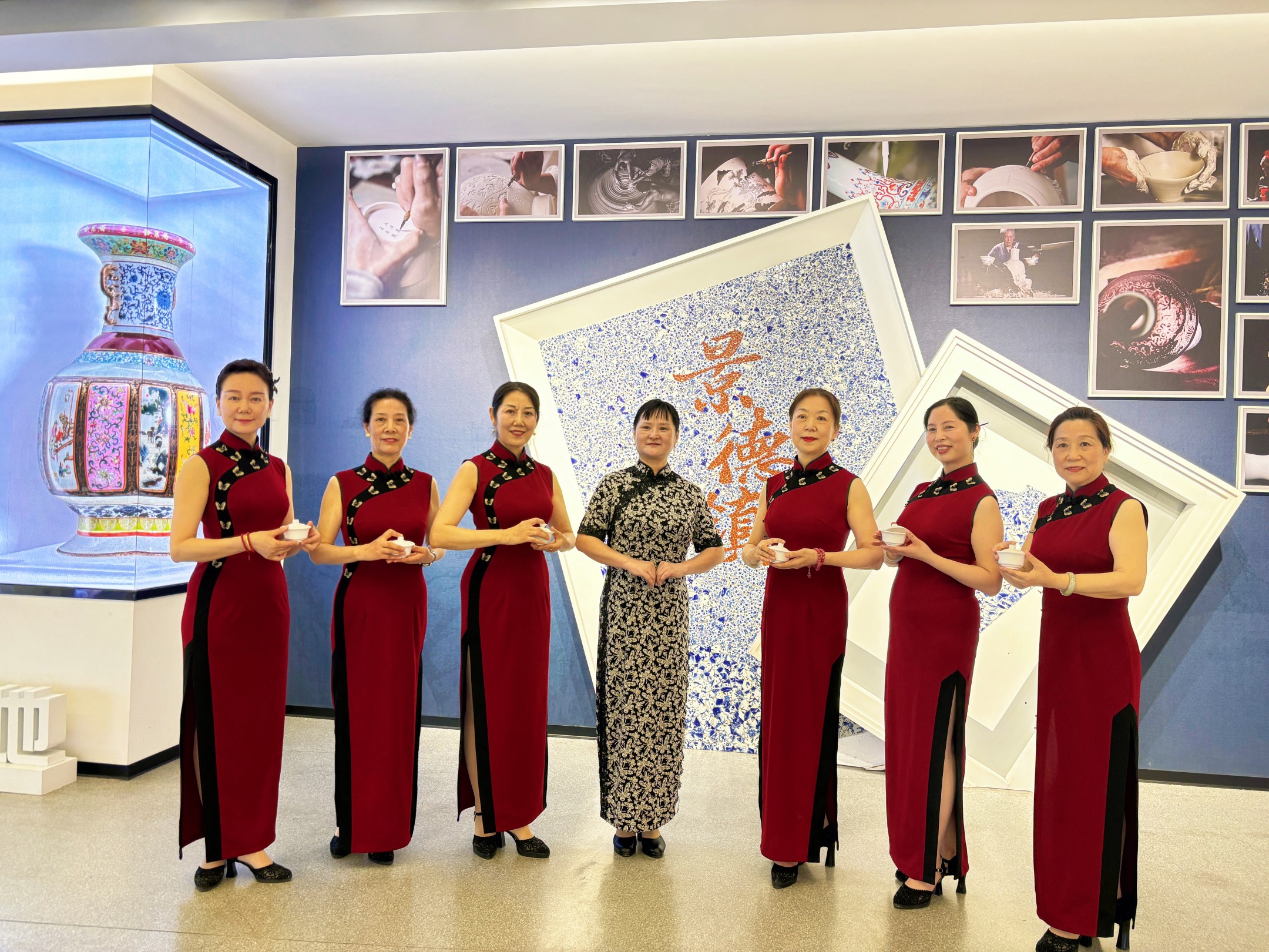 而整场研学的高潮,出现在景德镇中国陶瓷博物馆。在这里,望湖街道老年学校东方舞韵精品班的学员们身着素雅旗袍,在瓷器展厅展开了一场别开生面的即兴演出。青花瓷前,她们以柔美舞姿呼应瓷器线条;粉彩瓷旁,手捧盖碗,恍若画中人来。银发与青花同框,舞韵与瓷魂共振,引得参观者纷纷举起手机,记录这东方美学交融的动人瞬间。
