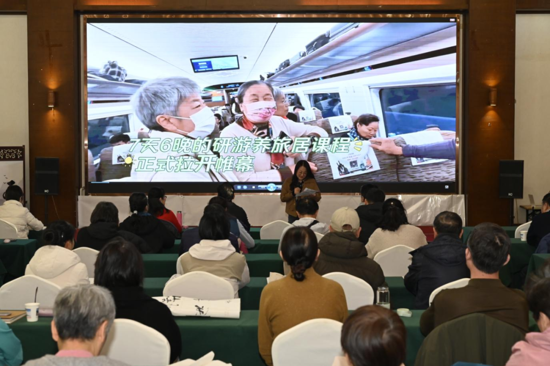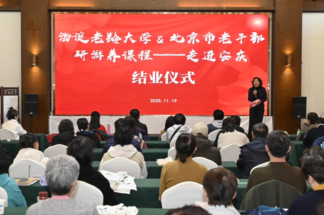 11月19日下午,《走进安庆,北京老干部&海淀老龄大学研游养旅居课程》结营仪式在天悦湾温情启幕。安庆市委老干部局副局长、市老年大学副校长 华文江,安庆市委老干部局办公室主任、四级调研员 周艳北京市民政局原一级巡视员 陈建领,北京市人大常委会委员、城建环保委副主任 赵迅、全联康旅团队及安庆在地服务伙伴代表与全体学员齐聚一堂,共同见证这段美好旅程的圆满收官。
