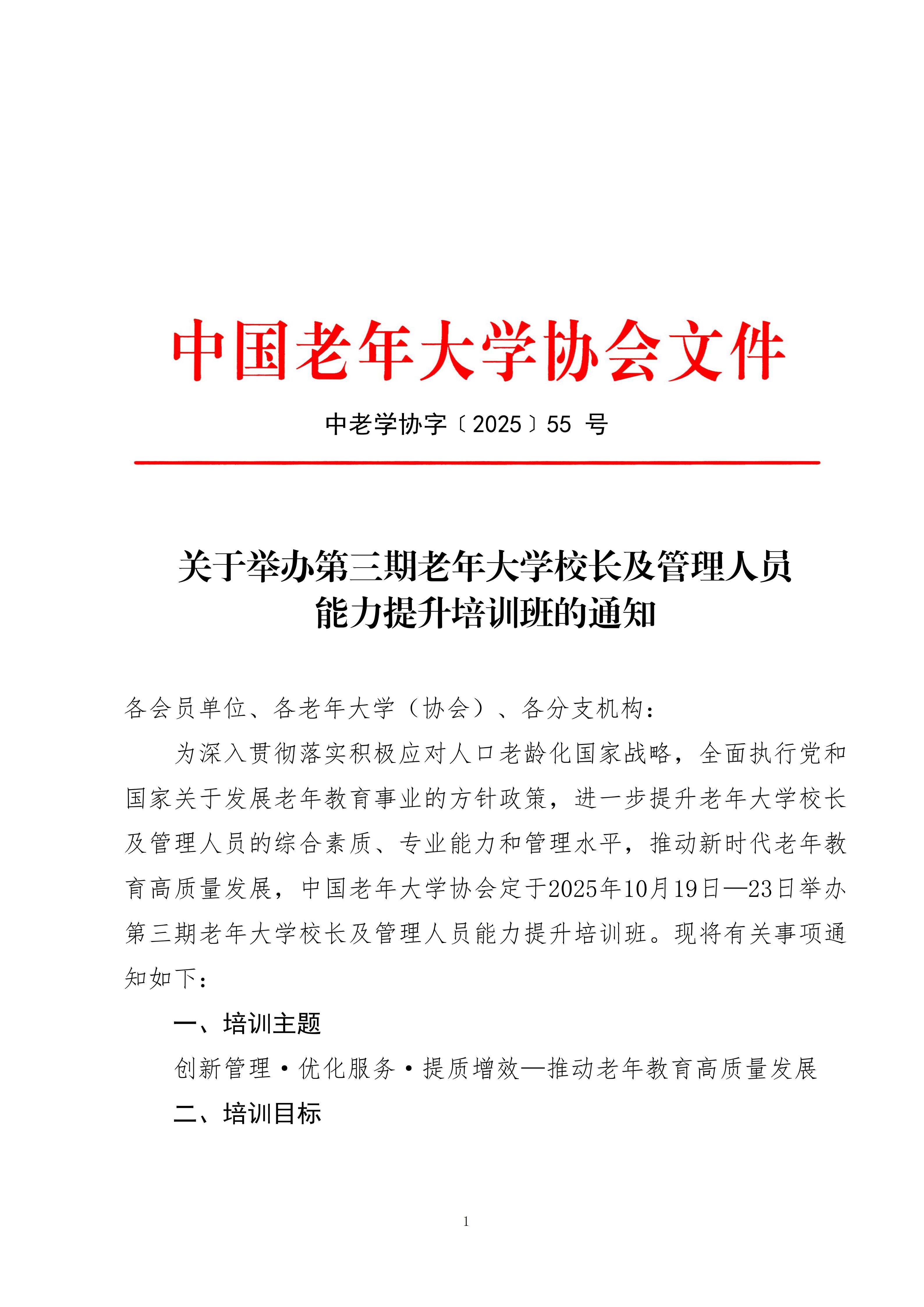 关于举办第三期老年大学校长及管理人员能力提升培训班的通知.pdf