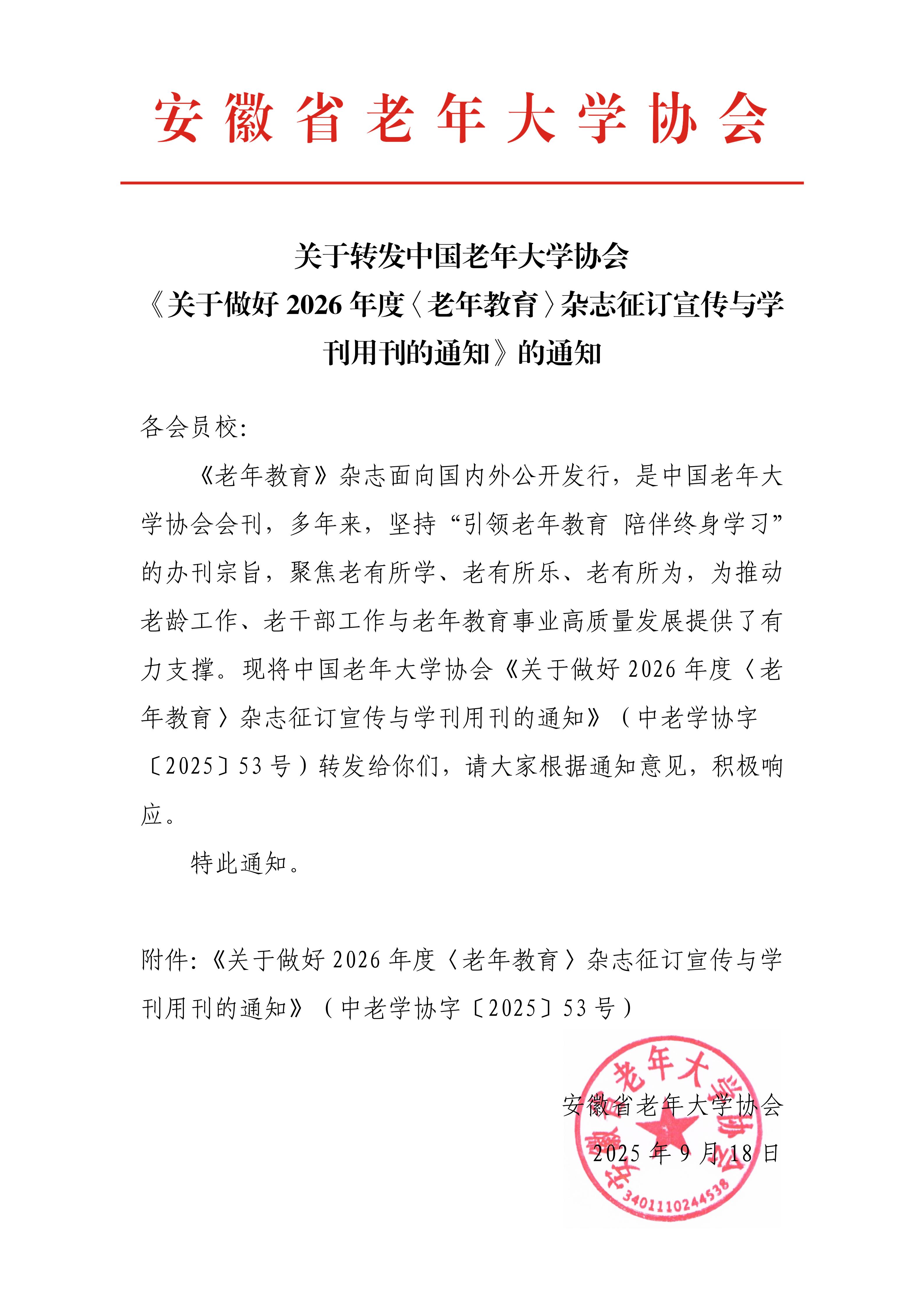 关于转发中国老年大学协会《关于做好2026年度〈老年教育〉杂志征订宣传与学刊用刊的通知》的通知