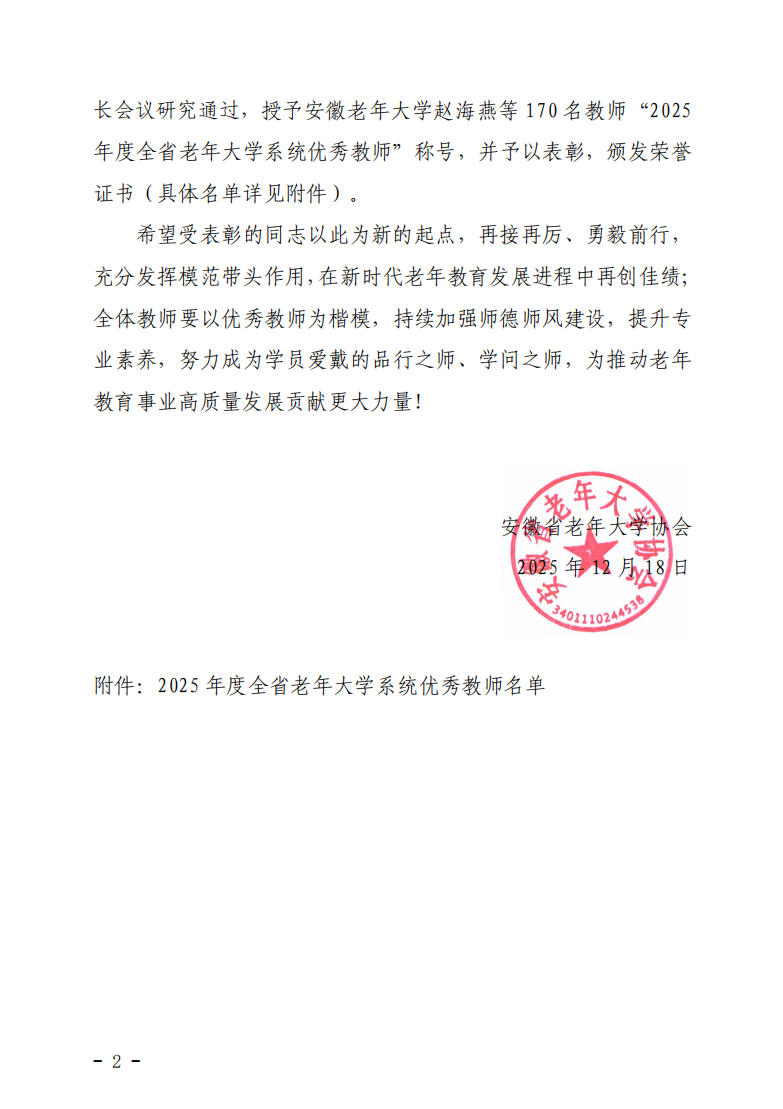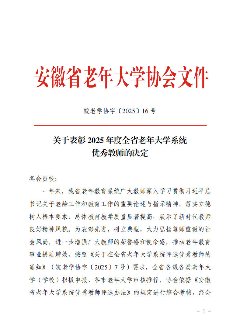 关于表彰2025年度全省老年大学系统优秀教师的决定