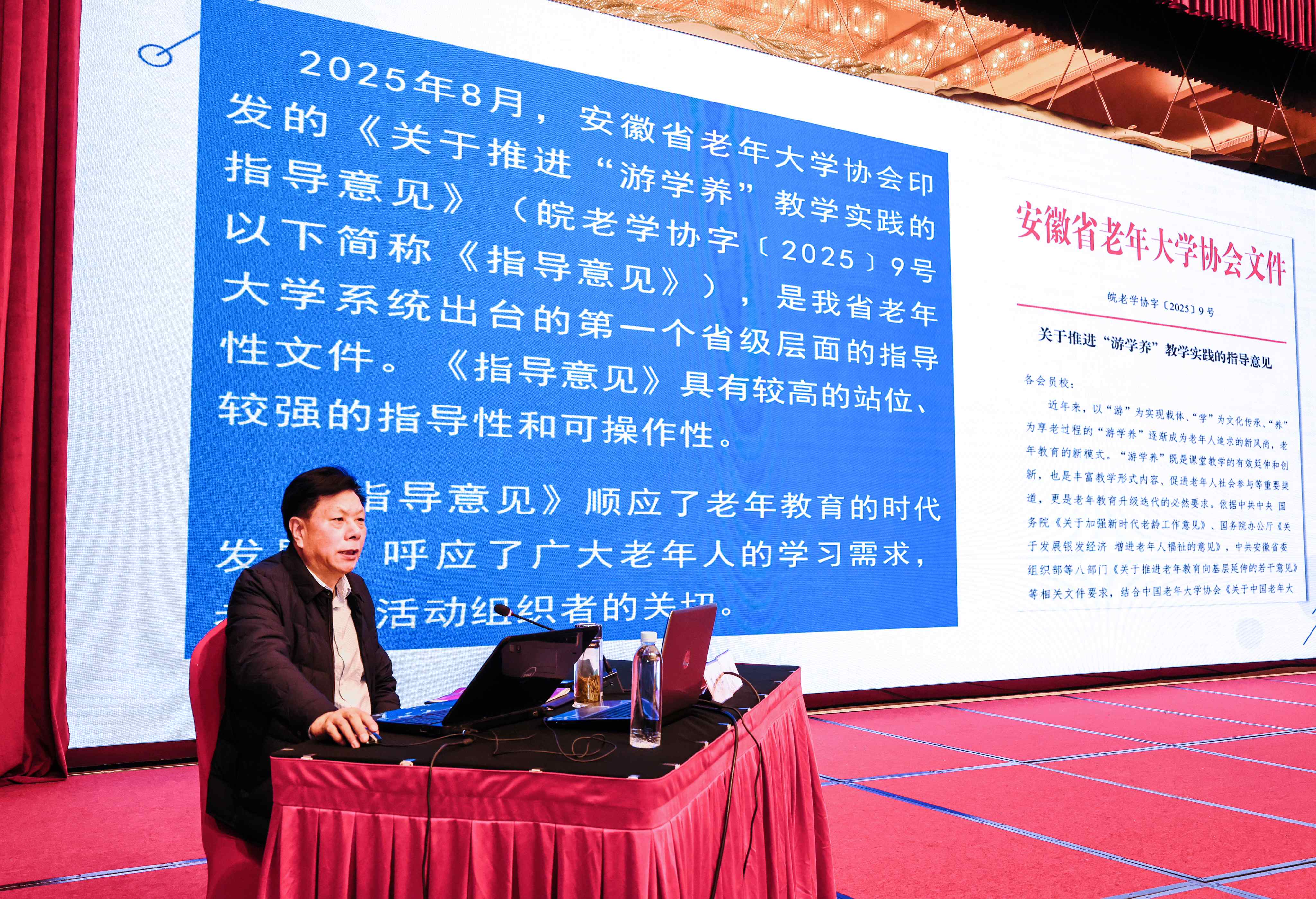 朱彤对培训进行了小结。他指出,“十四五”以来,全省老年大学系统坚持党的全面领导,以扩大老年教育有效供给为重点,以加快老年教育现代化为主线,不断完善老年教育办学服务体系,提升老年教育服务能力,丰富老年教育内容和形式,为积极应对人口老龄化、建设全民终身学习的学习型社会提供了有力支撑。2026年是“十五五”开局之年,希望各校以本次年会暨培训为新的起点,锚定目标任务,乘势而上。坚持以人民为中心的发展思想,践行积极老龄观、健康老龄化理念,以推动老年教育高质量发展为主题,以改革创新为根本动力,以满足人民日益增长的美好生活需要为根本目的,强化思想政治引领,优化资源供给,推动数字赋能,深化融合创新,赋能银发经济,挖掘老年人力资源潜力,为加快建设现代化美好安徽发挥聪明才智贡献银发力量。