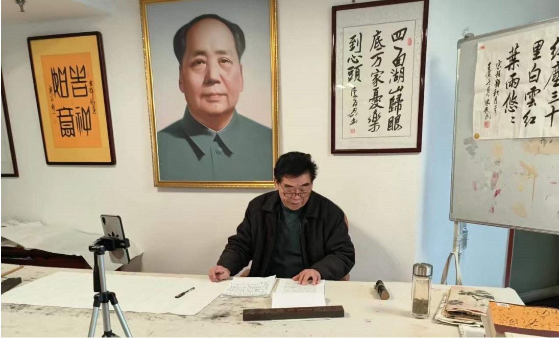 “同学们,我先给大家演示下《秋月》这幅作品的书写要点,然后请大家练习后,把自己的作品上传到微信群中,我来给大家点评。”这是淮北市老年大学行书二班陈爱民老师在直播课上的教学示范,在讲解完要点之后,学员们积极响应,在微信群中上传各自作品,并就书写中遇到的问题和陈老师进行互动交流。大家纷纷表示:“疫情期间虽然没有办法到校上课,但通过线上学习,教学效果同样很好。”