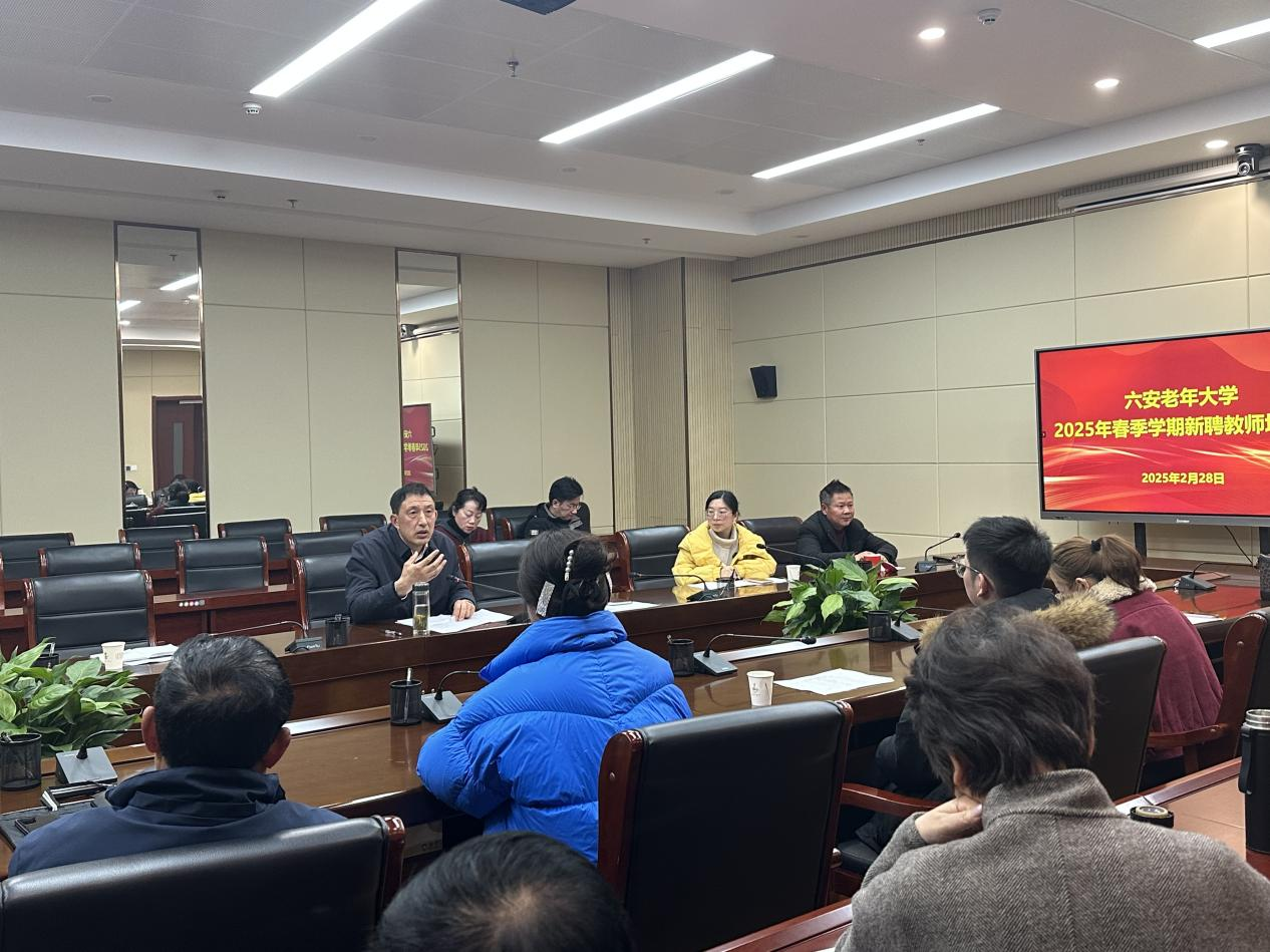 磨刀不误砍柴工,为师亦上“第一课”。为全面提升老年教育教学水平,帮助新教师快速掌握老年教育规律,实现从普通教育者到专业老年教育工作者的角色转型,六安老年大学于 2 月 28 日举办春季学期新聘教师岗前培训会。本次培训以“专业化赋能?精准化培养” 为主题,通过 “理论 + 实践”双轨模式,为 20 余名新聘教师量身定制入职 “第一课”。