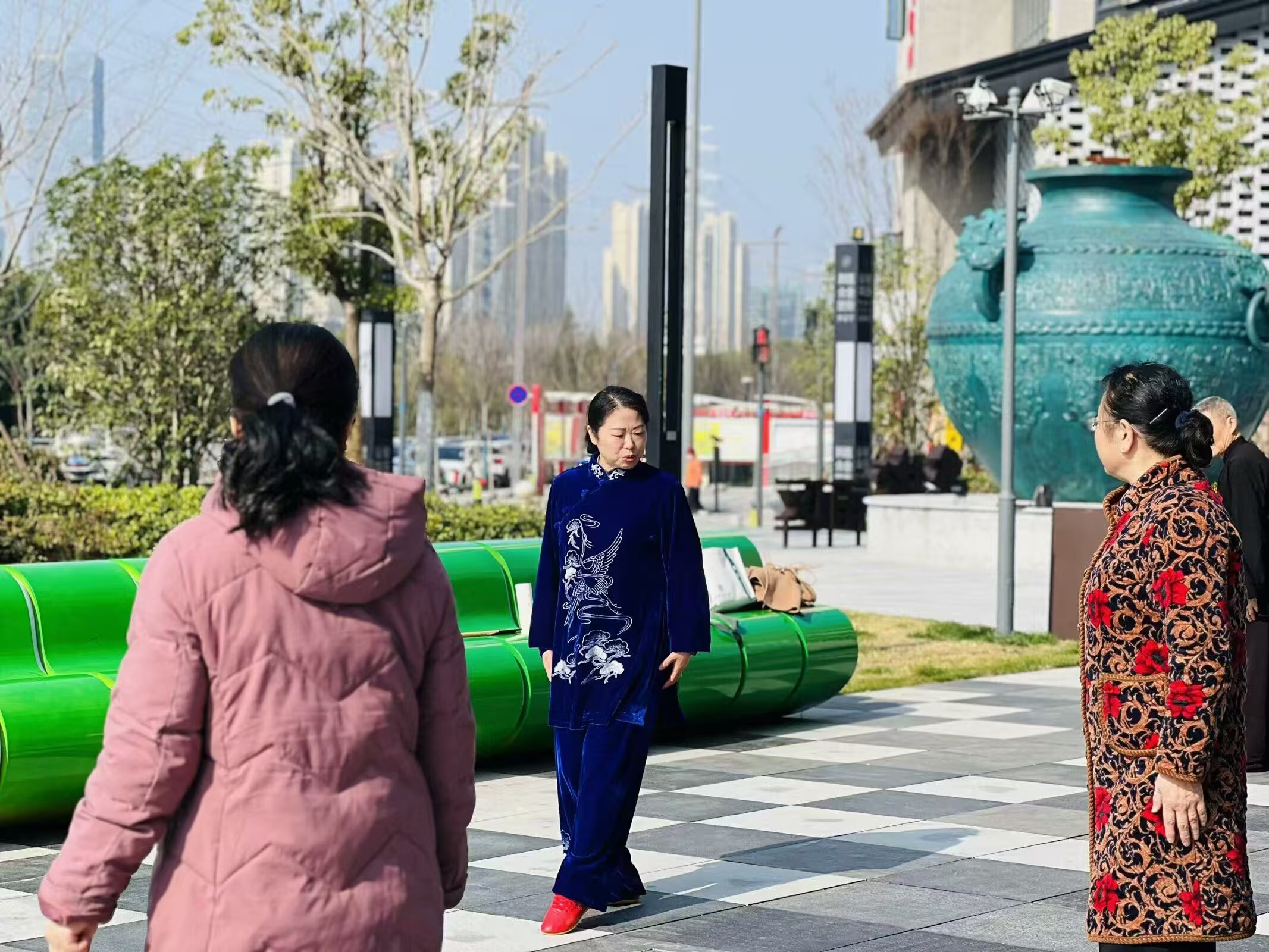 理论课结束后余老师与学员们来到罍街南区小广场,激动人心的“阴阳双合拳”广场展示正式开始! 在悠扬舒缓的音乐声中,学员们跟随余老师的示范,动作整齐划一、行云流水,一招一式,刚柔并济,将“阴阳双合拳”的精髓展现得淋漓尽致。只见她们时而如行云流水,时而如猛虎下山,拳拳生风,气势如虹。