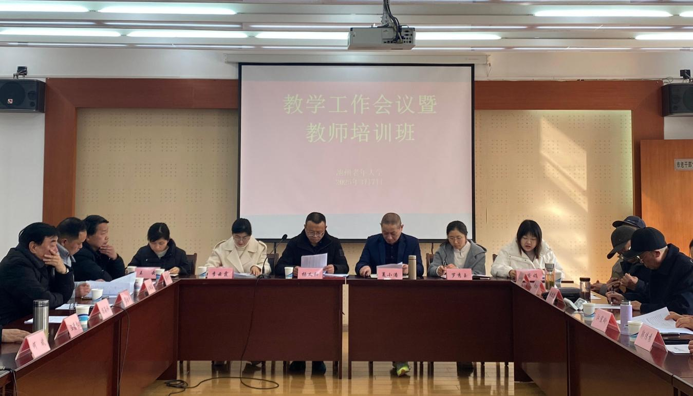 为深化全国老年大学标准示范校建设,实施好2025年春季学期教学工作,3月7日下午,池州老年大学在南校区二楼会议室召开2025年春季学期教学工作会议暨教师培训班,常务副校长杨义和出席会议,副校长李云霞主持会议,全体干部职工及教师代表30余人参会。