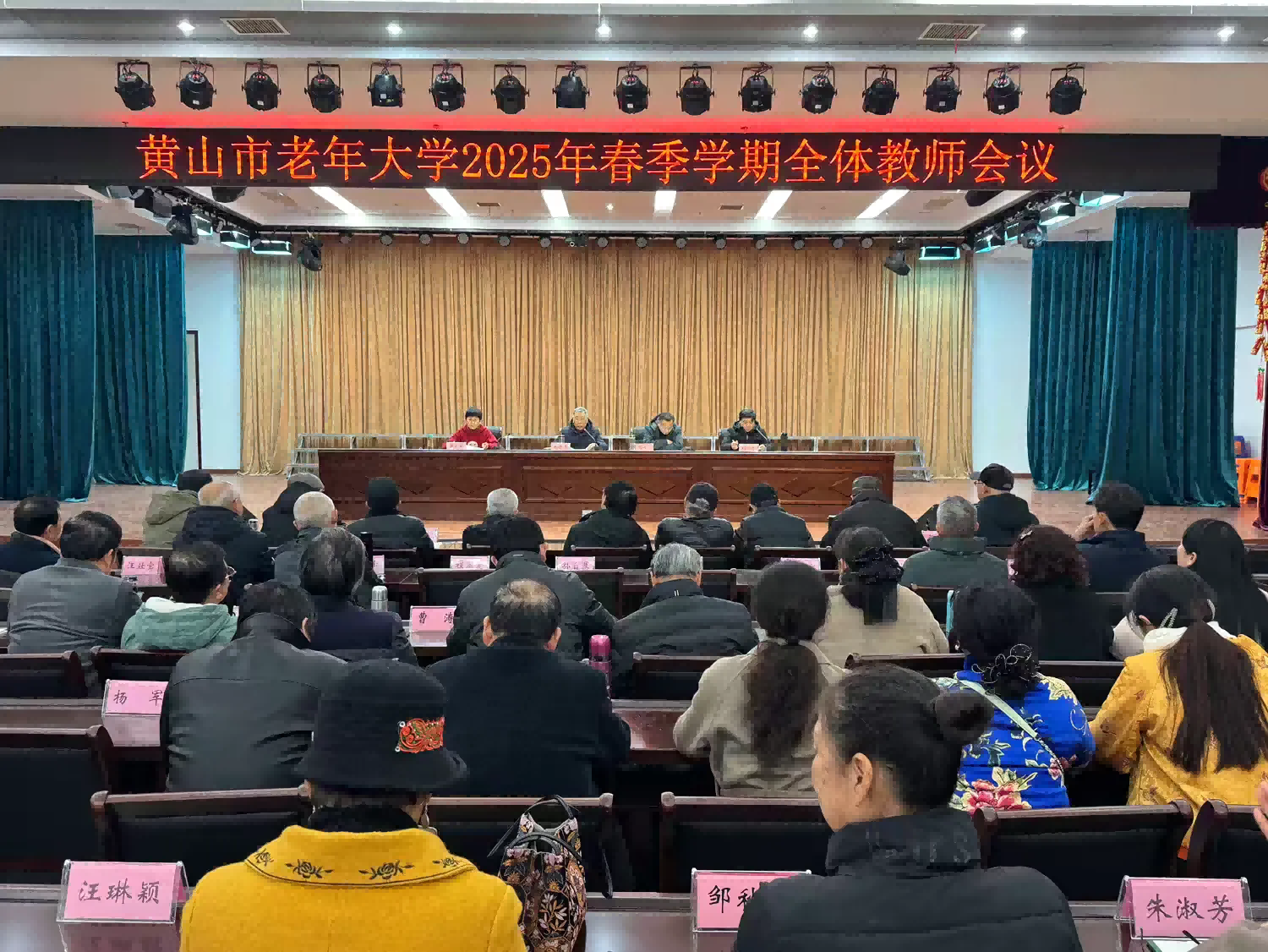 3月14日下午,黄山市老年大学召开2025年春季学期第一次全体教师会议,校长姚邦藻通报近期工作情况,部署全年和春季学期主要工作,市老年大学全体教师及工作人员参加会议。