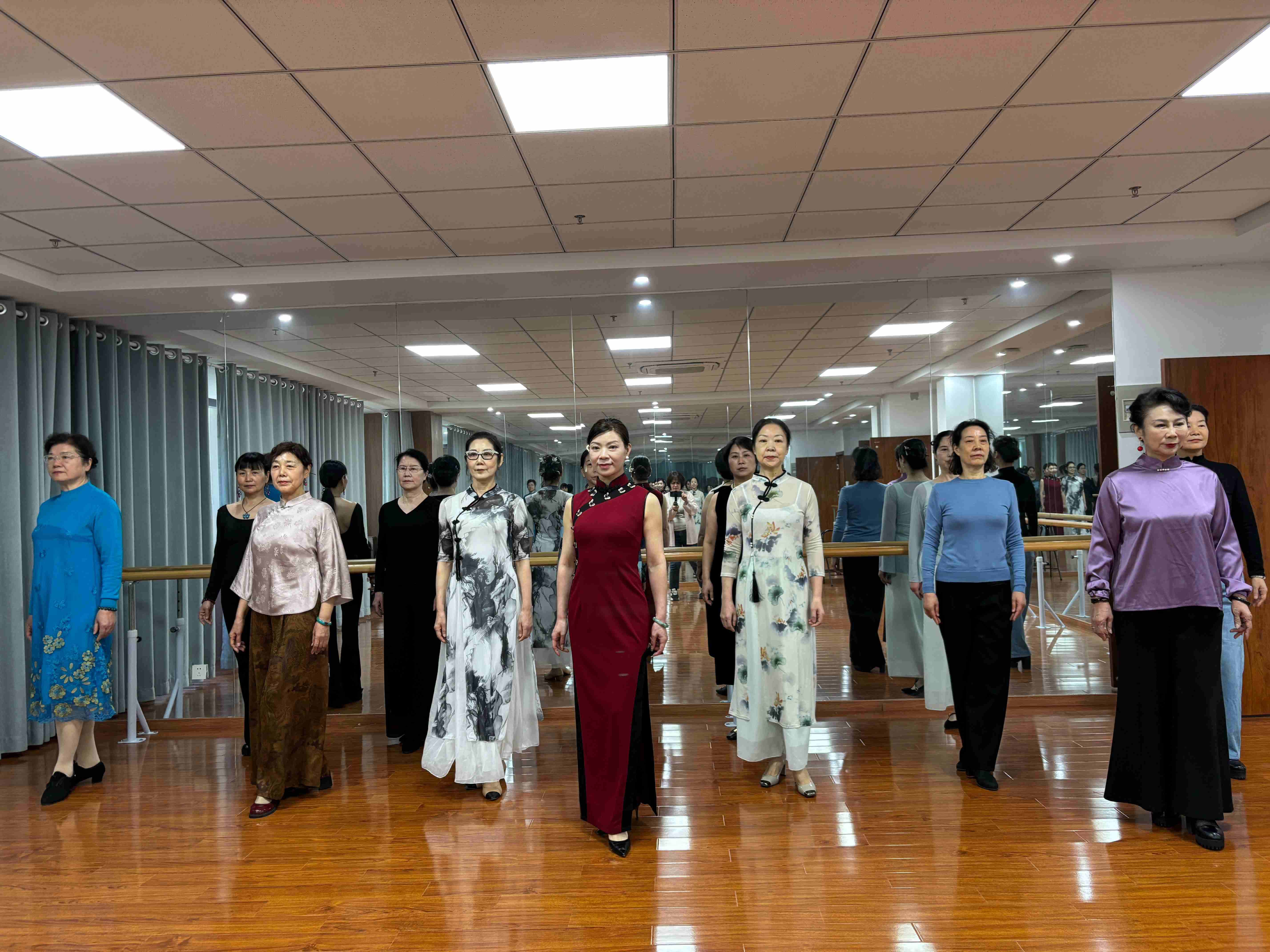 课程接近尾声,学员们跟随老师,一起检验今天的学习成果。大家跃跃欲试,教室里掀起一阵阵优雅的清风,岁月沉淀下的她们,散发着独特的韵味,此时此刻,她们向美而来,逆龄生长!岁月从不败美人,每一次华丽的转身都是时光赋予的优雅,每一个坚定的步伐都是内心不老的宣言。