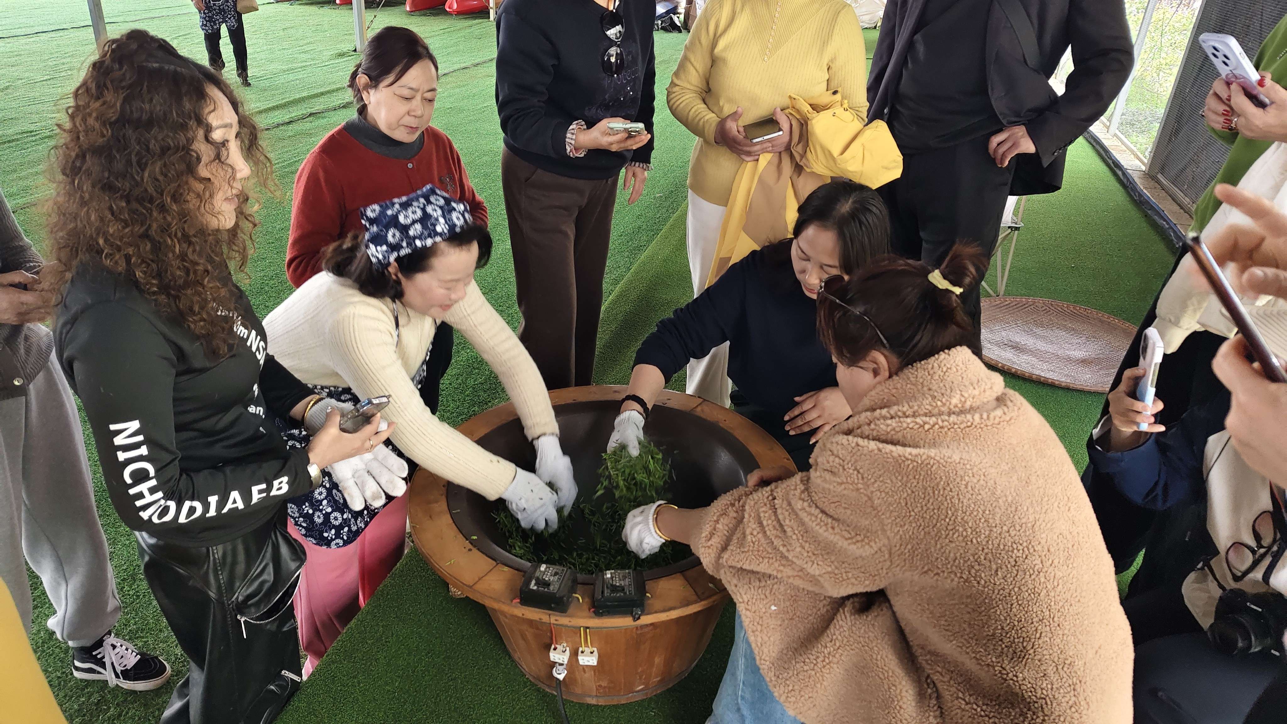采茶结束后,学员们移步茶厂,现场体验杀青、揉捻等传统制茶工艺。在制茶师傅的示范下,大家亲手揉捻茶叶,感受“一片叶子”的蜕变之旅。